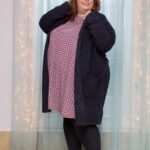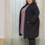 Another type of cardigan is the oversized wrap. My little rule with this is: baggy on top, snug on bottom. If you’re wearing an oversized piece on top, then wear skinny jeans or leggings or slim tailored pants or a pencil skirt on the bottom. Below I’m showing another “don’t.” These jeans are just too baggy and wrinkled at the knees to look their best with this oversized cardigan. My black skinny jeans would be a much better choice.