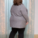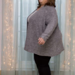 I also prefer when the top layer is darker than the underneath layer. This might just be me, but to me colors have weight. Dark colors carry more visual weight than lighter colors, and wearing the lighter over the darker just always feels “off” to me. In this case they’re kind of close, they’re both grey, but the long sleeved tee base top is a lighter grey than the cardigan over top.