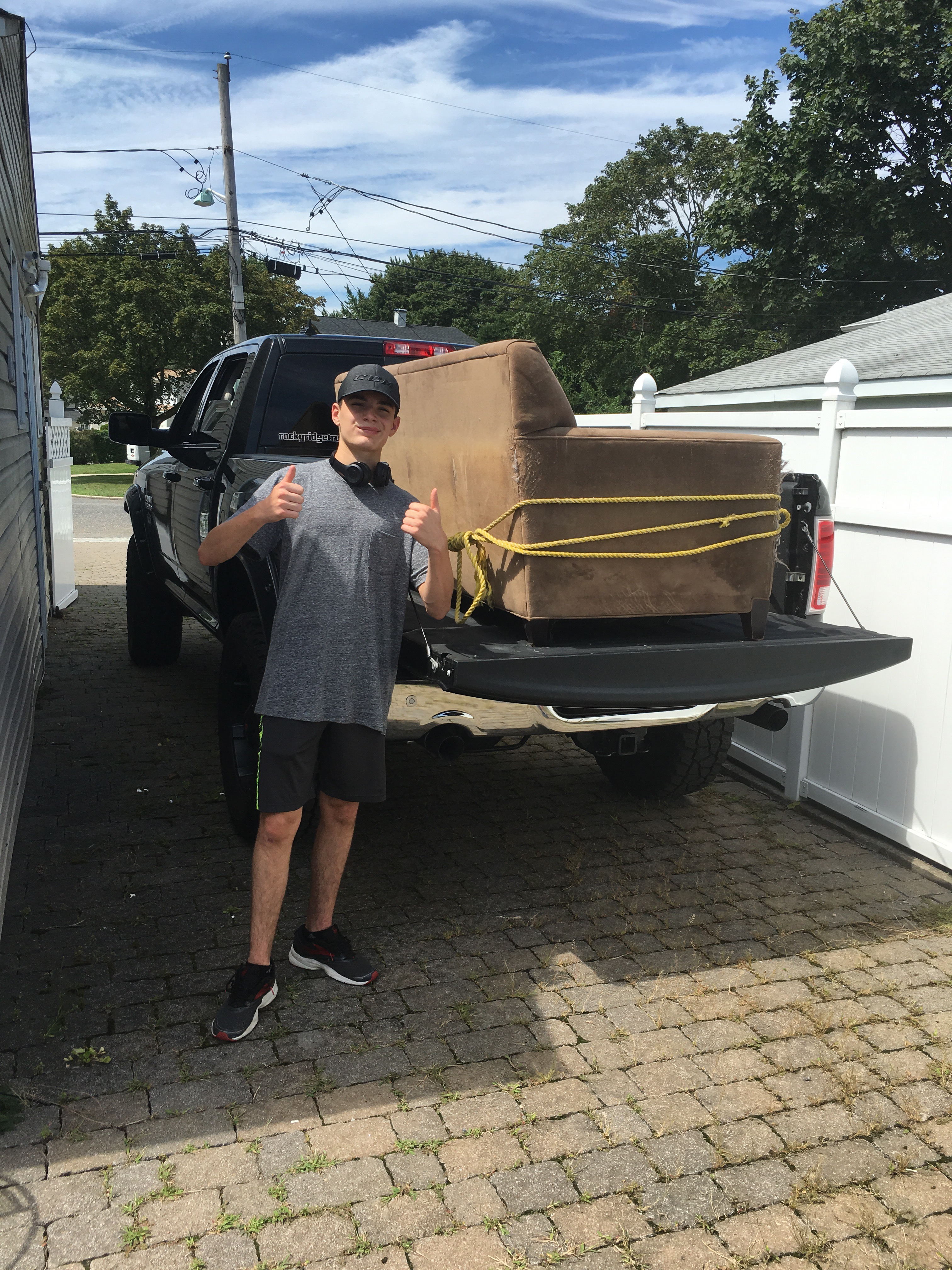 My handsome nephew helped move my old sofa to the dump, yay!
