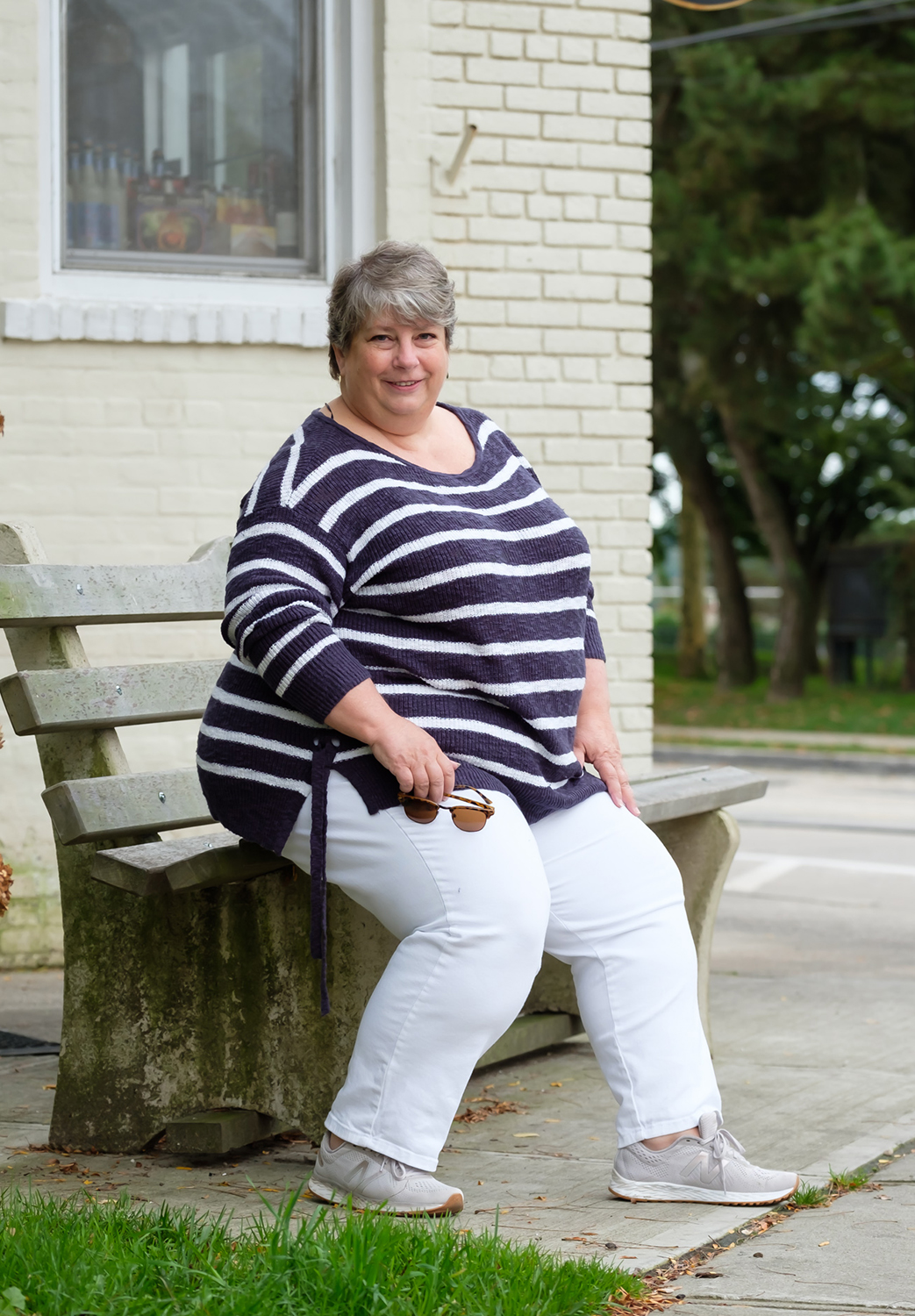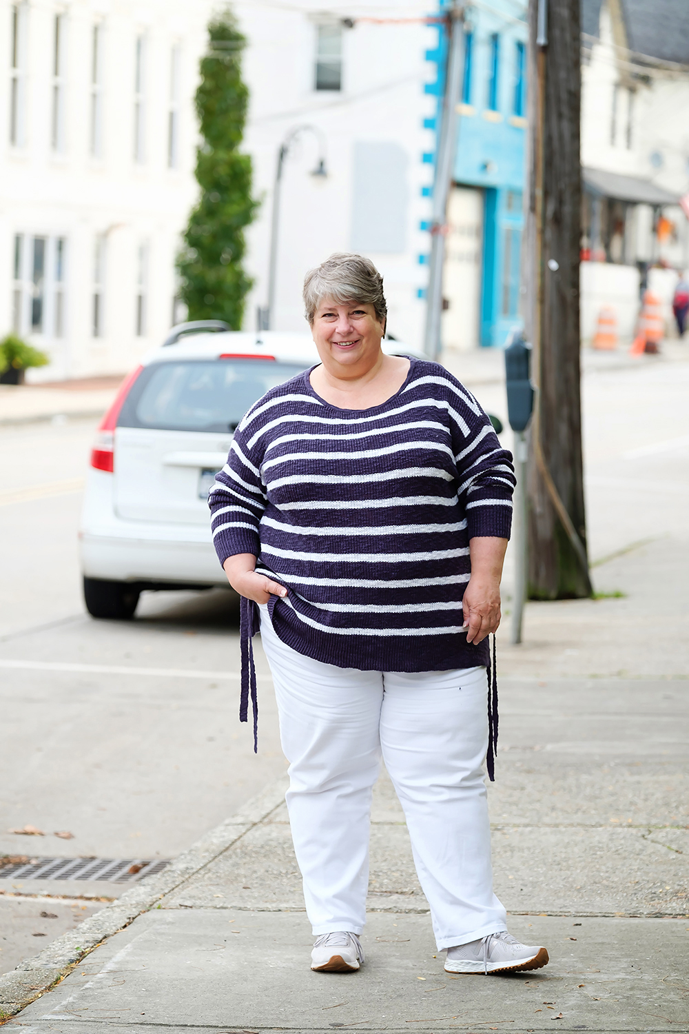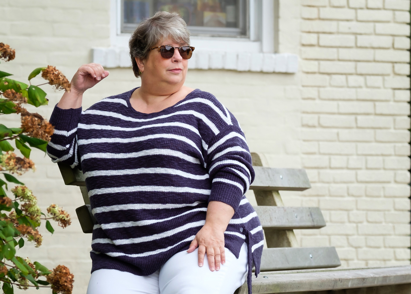- Caslon navy and white striped pullover, size 3x. No longer available, comparable here and here in plus size and here and here in straight size