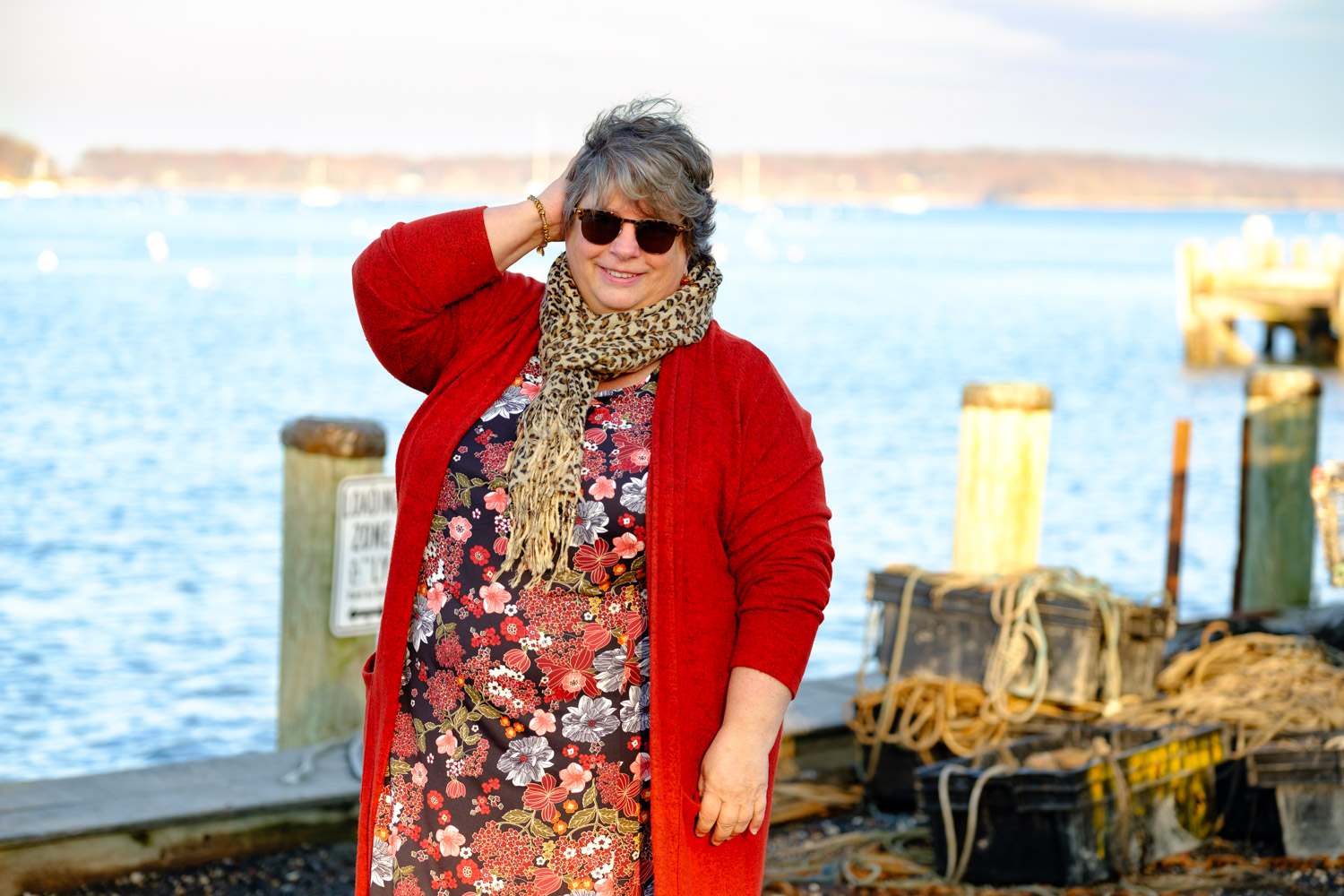 I love the floral print dress, leopard scarf and red cardigan together Bettye! You look lovely. Fantastic photos too. Happy Thanksgiving 🙂
