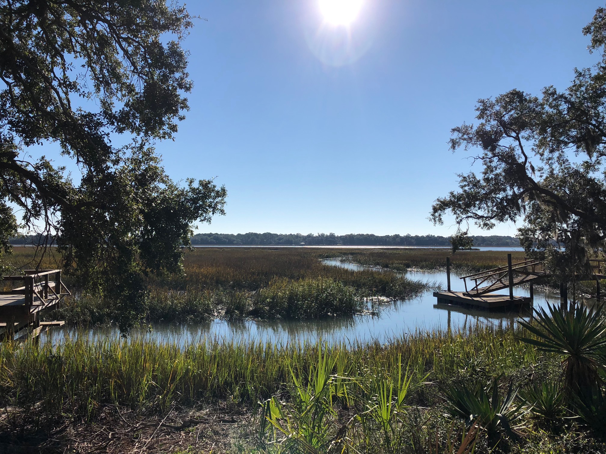 My sister and brother-in-law and their darling Corgi Taffy live on Cat Island in Beaufort, South Carolina. Their house is right on this marshy waterway and it’s so lovely and calming to sit out on their dock and watch the water gliding by and sea birds flying above. I’m told there are alligators but I have never seen one.
