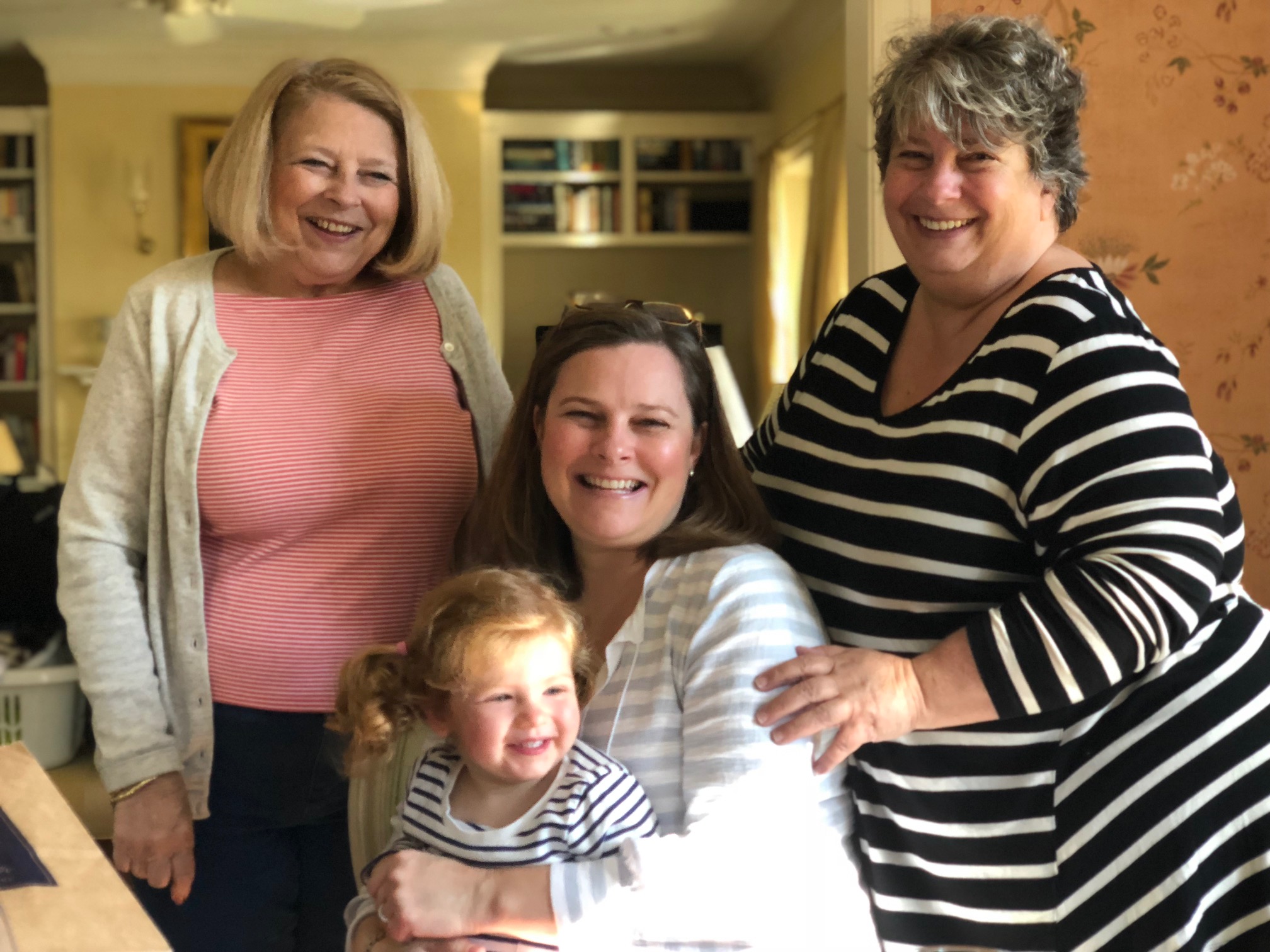 With no planning, me, my sister, niece and great niece all dressed in stripes that first morning! The stripey thing is genetic!