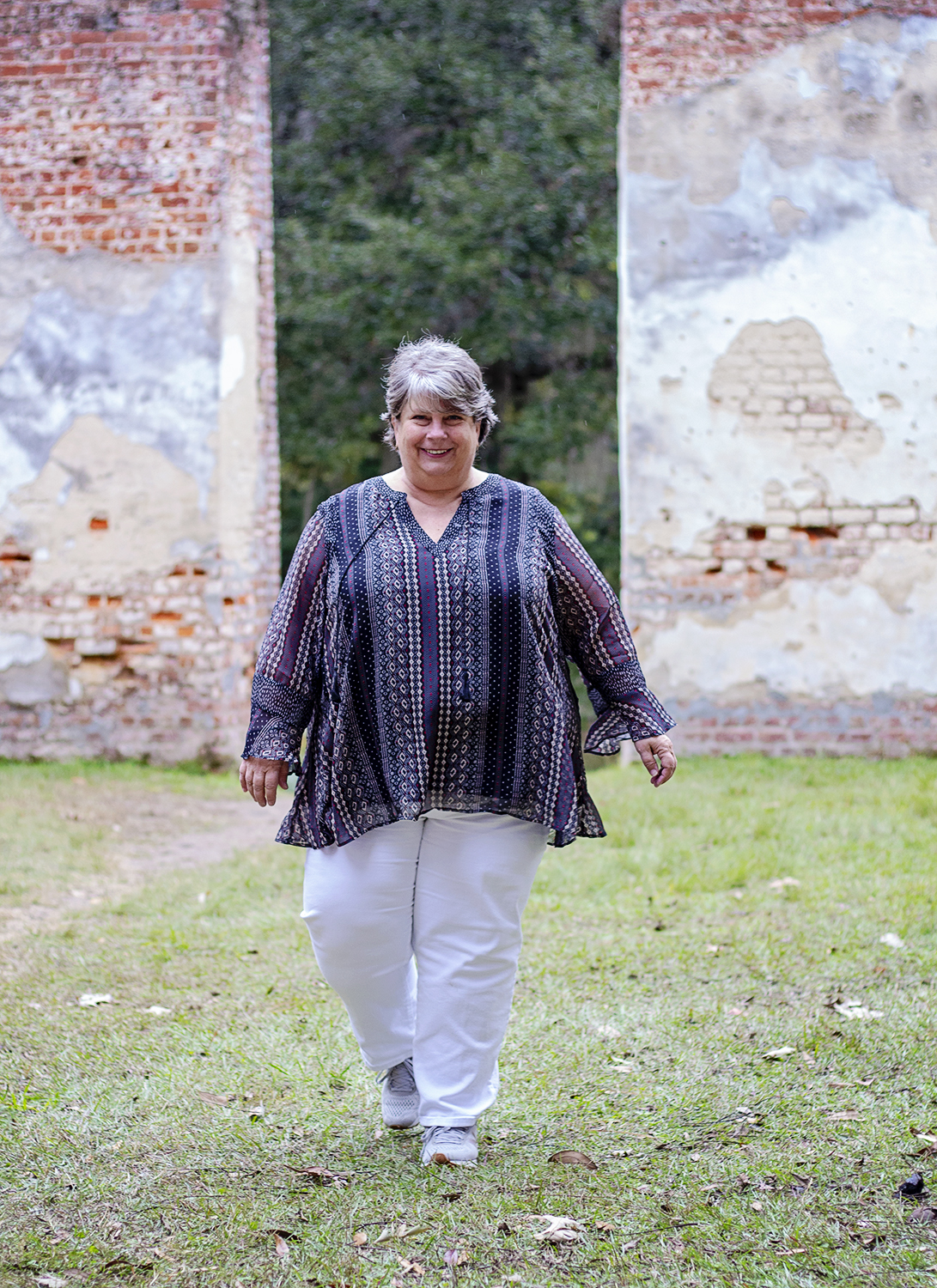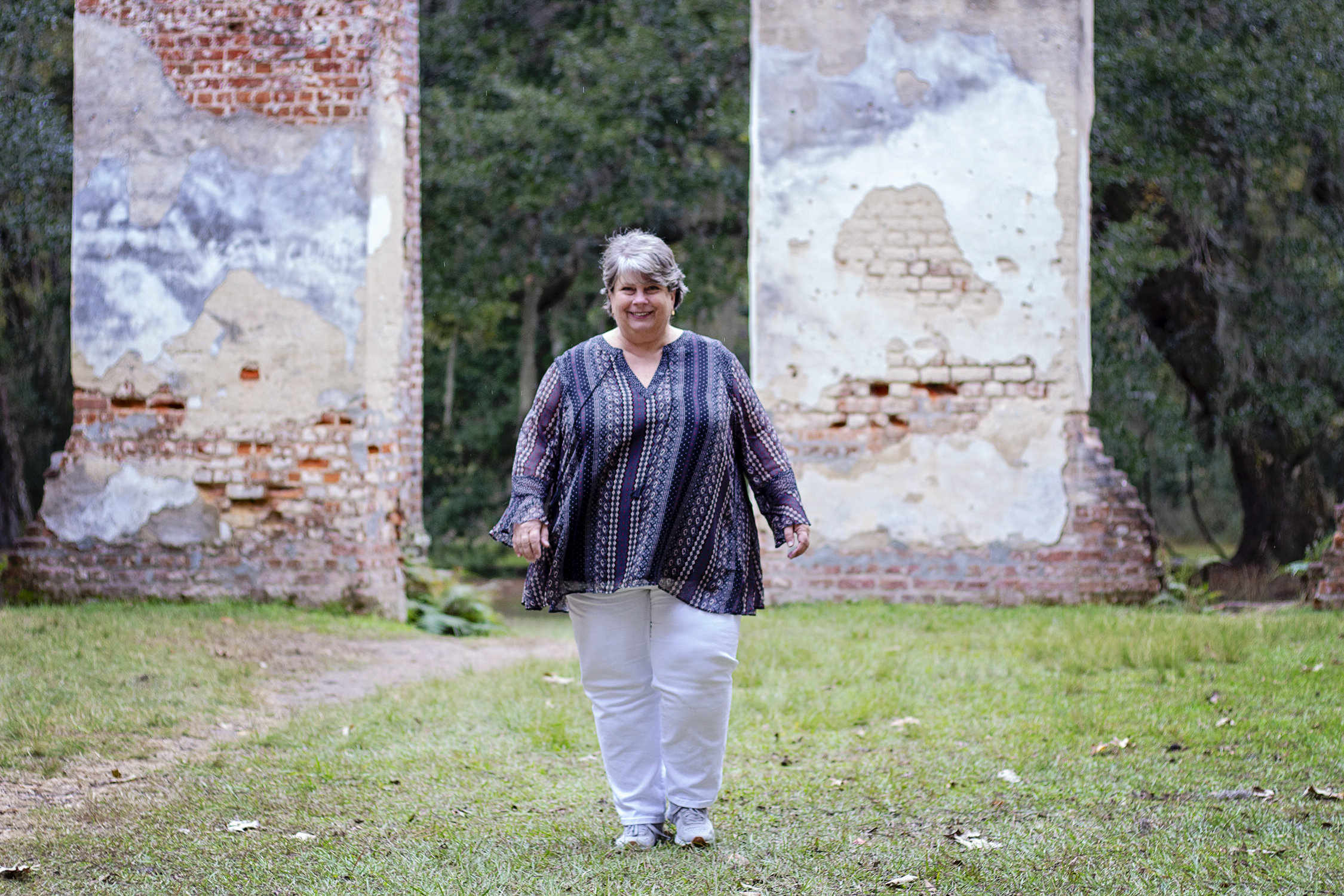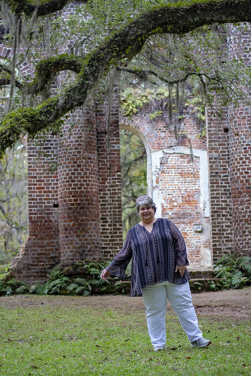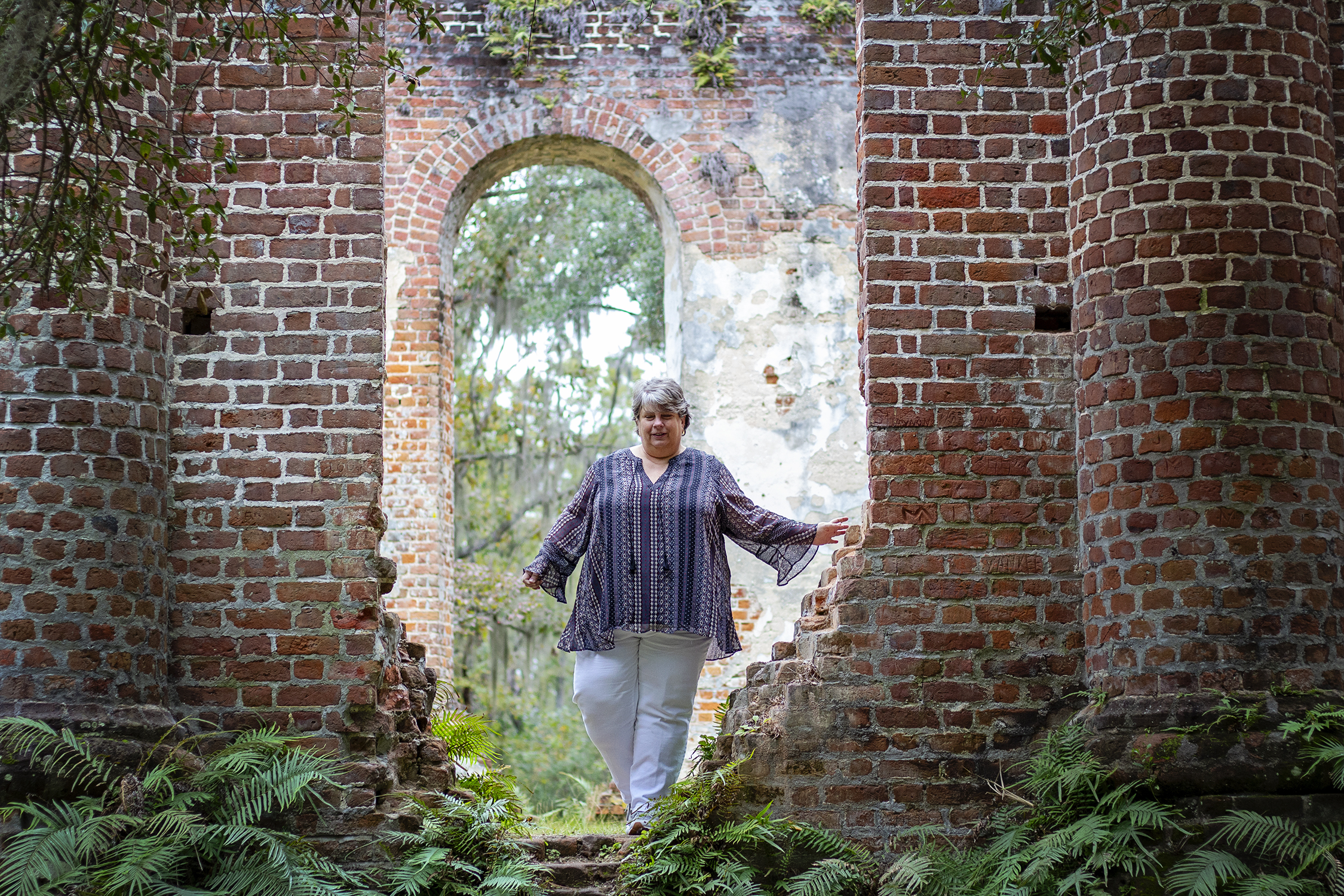 We shot both on the dock in my sister’s Cat Island, South Carolina backyard, as well as the ruins of Old Sheldon Church in Beaufort County, South Carolina. The building was originally known as Prince William’s Parish Church. The church was built as a chapel in the English Georgian style between 1745 and 1753. It is believed to have been burned by the British in 1779 during the Revolutionary War, rebuilt in 1826, and then burned again in 1865 during the Civil War.