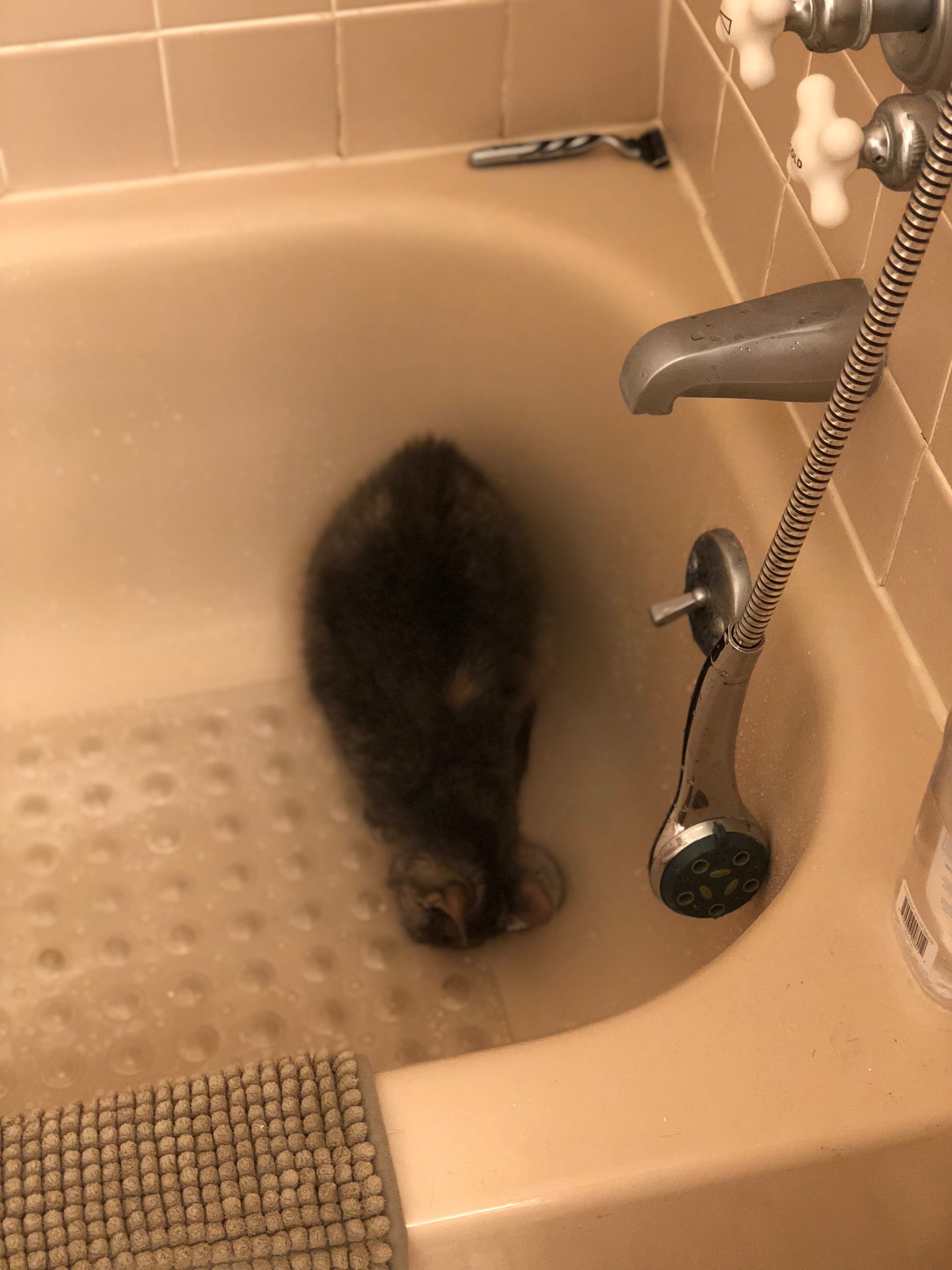 Uhm, one day Janey jumped into the tub. That was a big day.