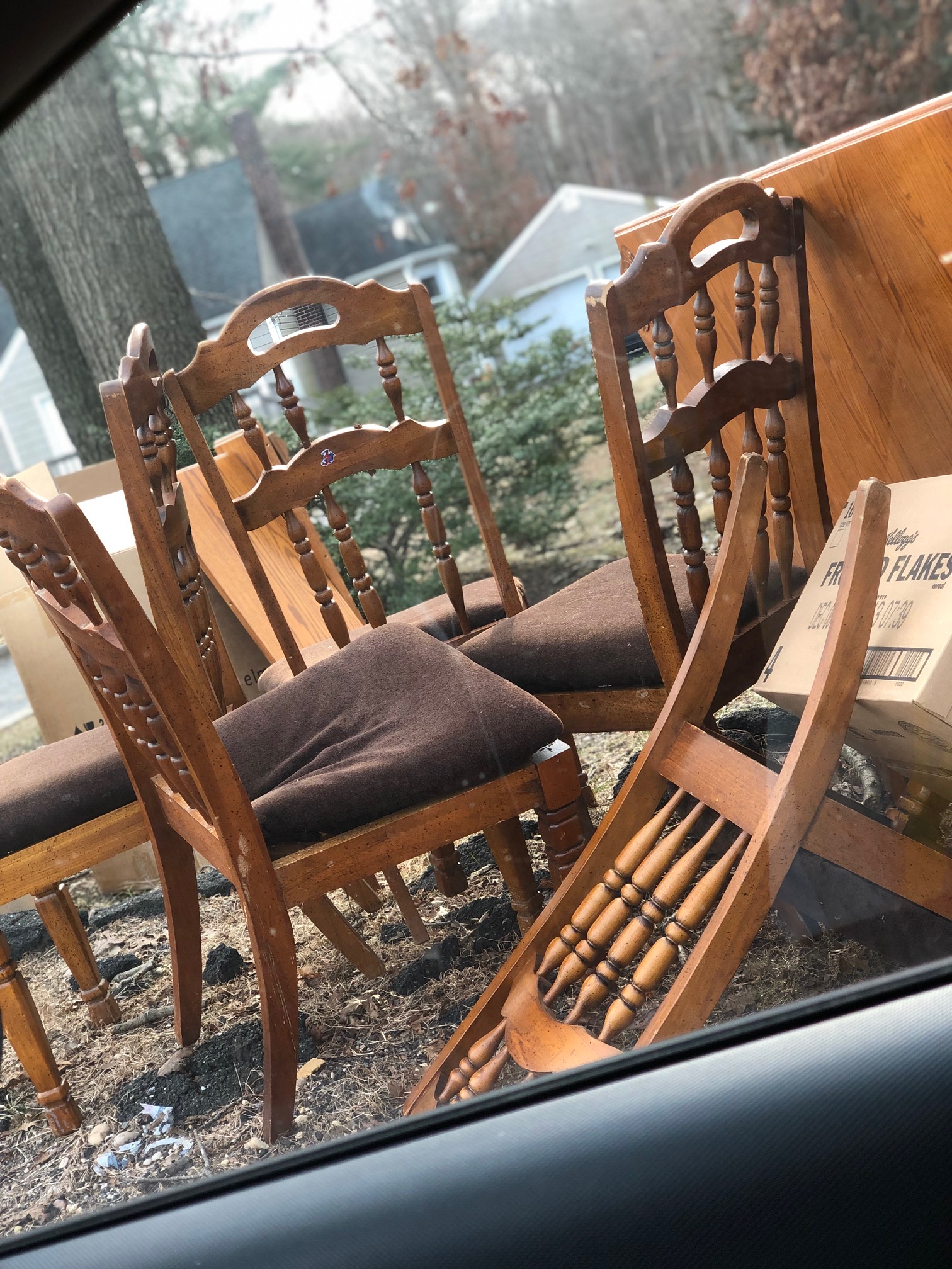My boss told me about some chairs on the side of the road on her way to work. Then *I* saw some chairs on the side of the road on my way to work. Shockingly, same chairs.