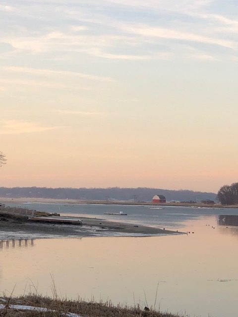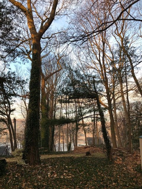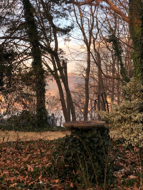 Got to sit outside that afternoon in the insane warmth and watch the sun set below the hill across the pond. Nice.