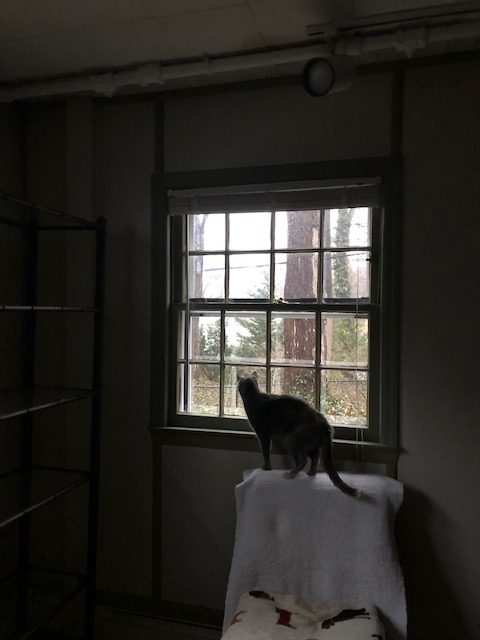 I keep trying to encourage her into the windows. I know it’s not the same as the cushy sofa right in front of the big window at the old place but…
