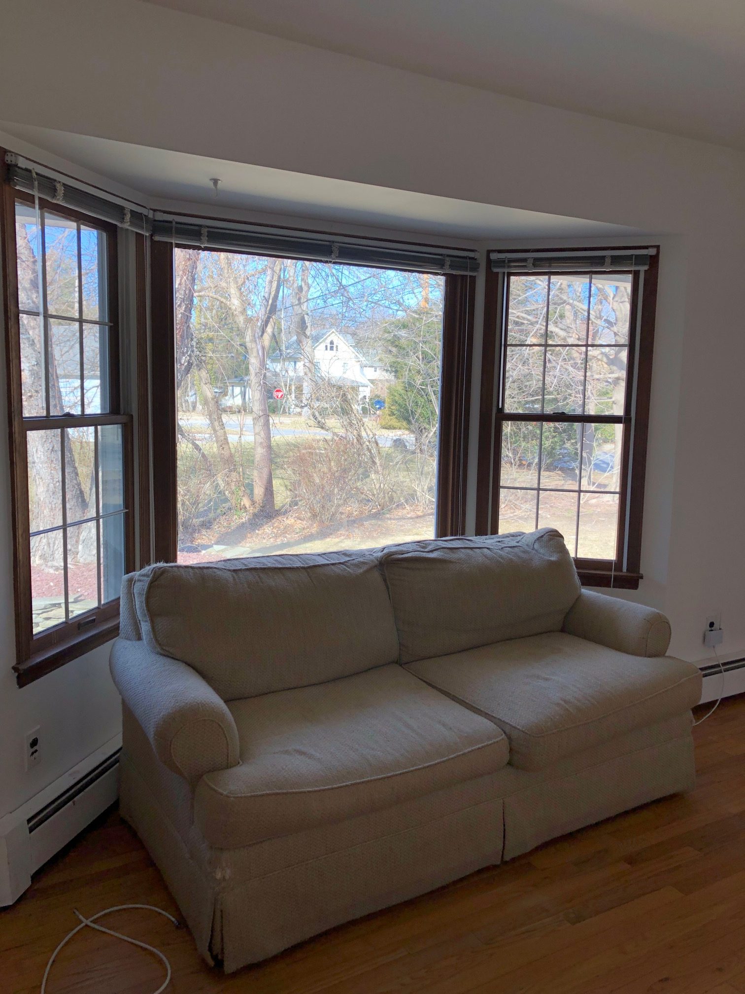 Someone (Julia?) asked me about the difference between the windows/view here vs the old apartment. I took some little video clips the day I went back over there to get the last of my things from inside. But here is the old living room window. You could see out from wherever you were. And you could see stuff. Kids on bikes, the ice cream man, people walking dogs, neighbors getting home after work.