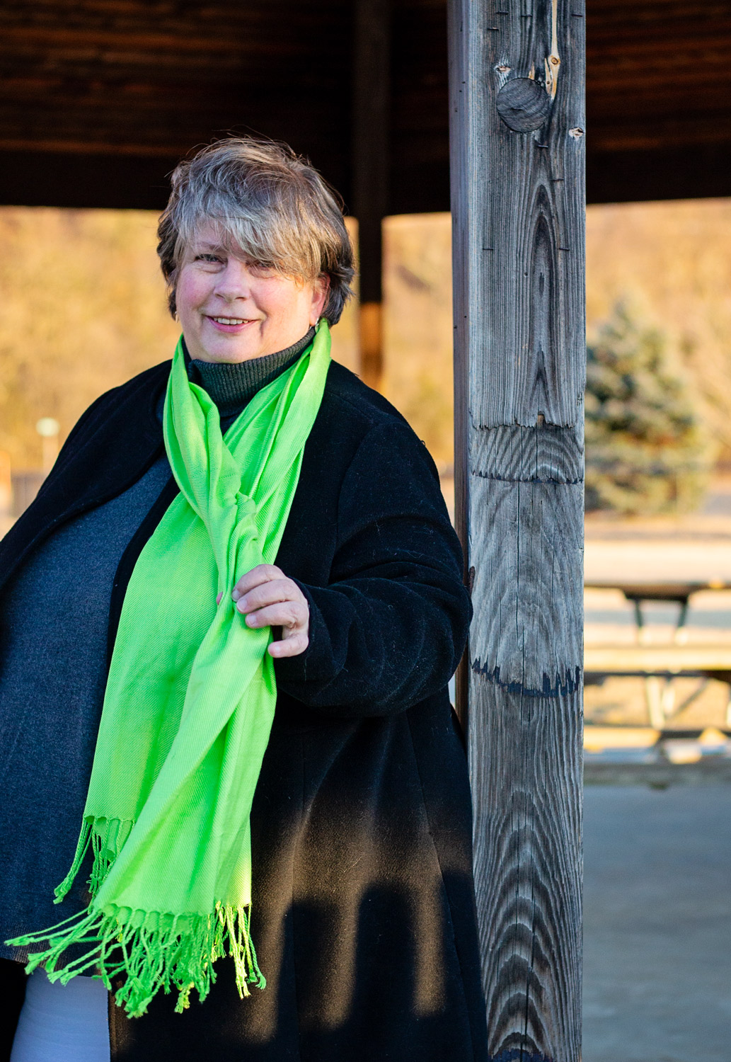 Love your neon green scarf, Bettye! You look lovely and I really enjoy your poses and photography as well. Great job!
