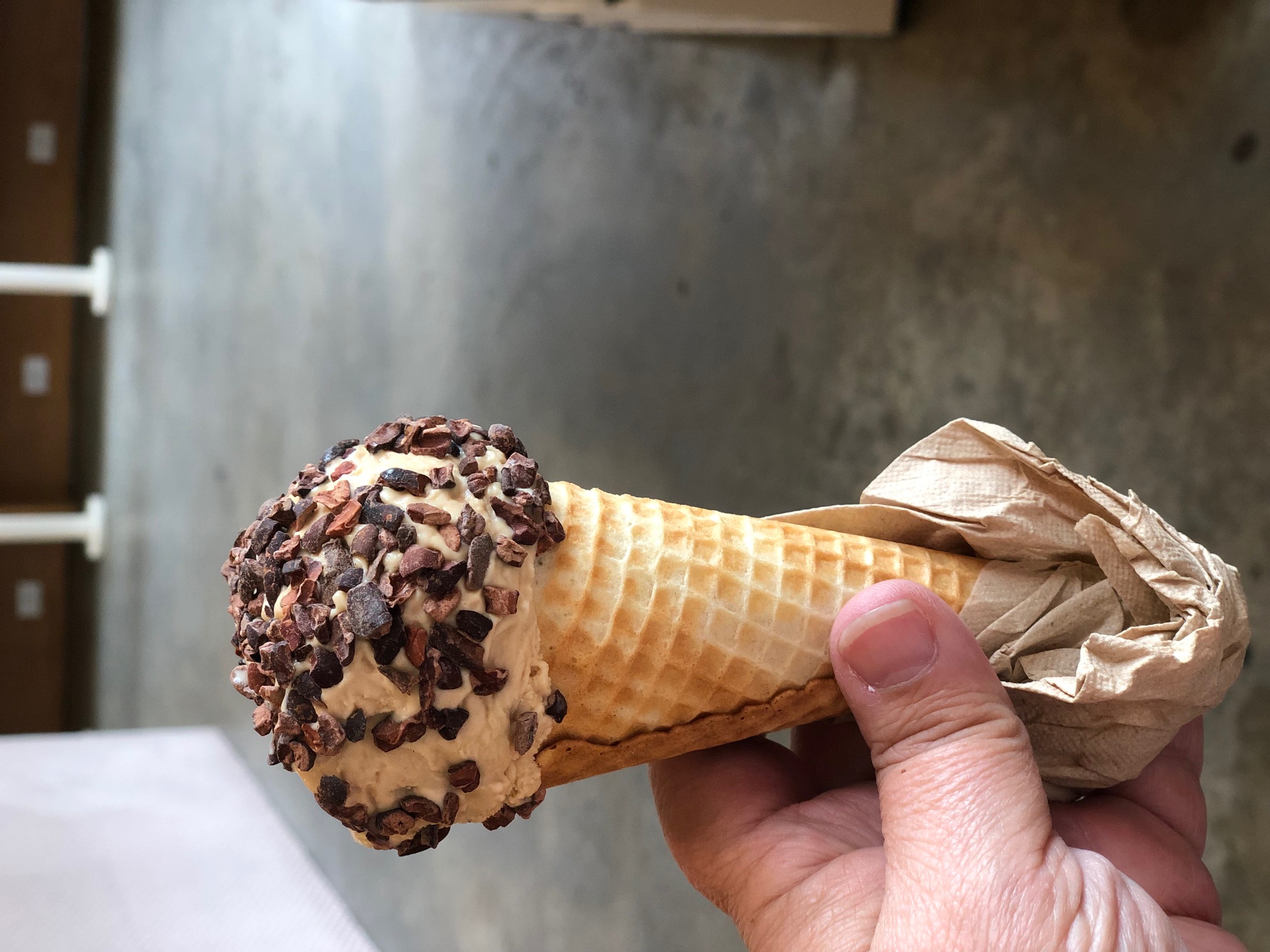 Earl grey ice cream with cacao nibs. Nibs.
