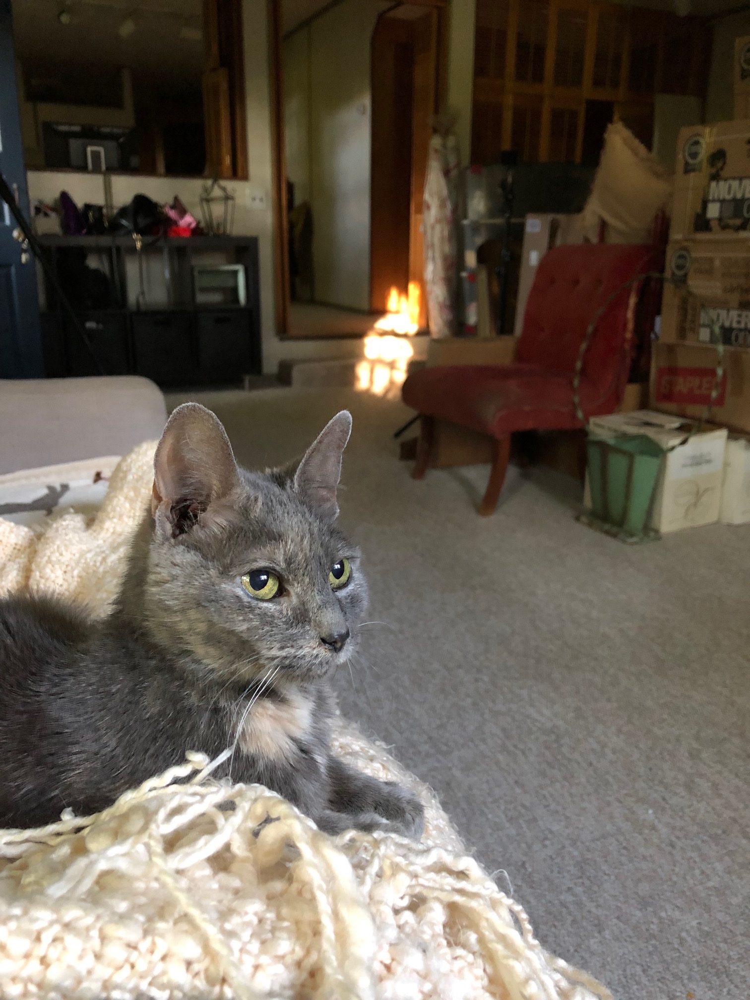 I am trying to spend more time reading. I need to add some “off-computer” relaxing time into my routine. Janey is very happy when I move to the sofa, though she likes tv watching best as then my hands are free for petting. Otherwise, she’s making me nuts. Anyone want a tiny cat?