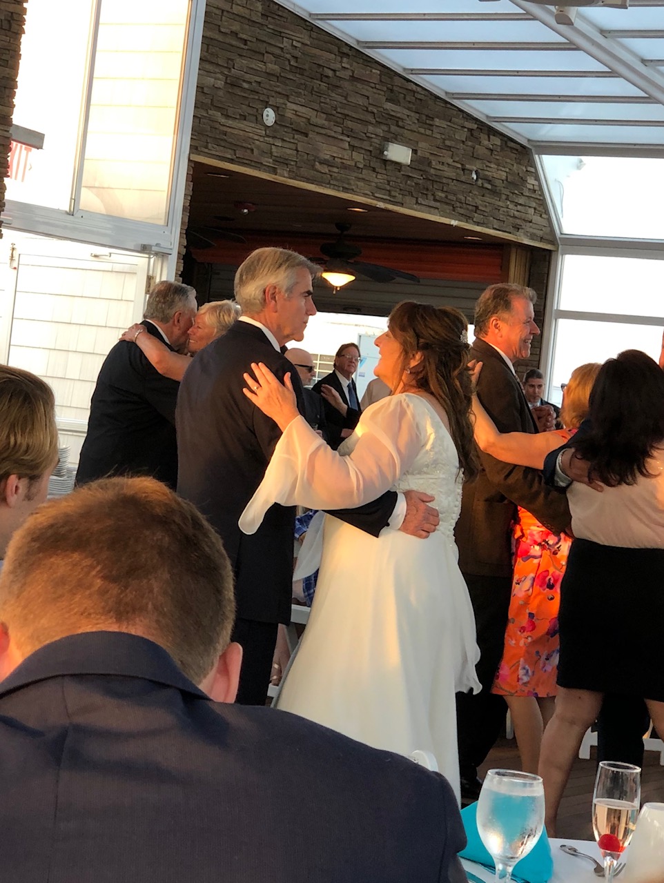 The wedding was lovely. The reception was right on the beach and the weather was perfect for staying outside much of the evening.
