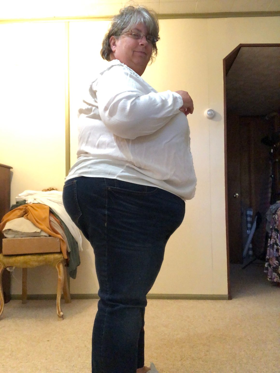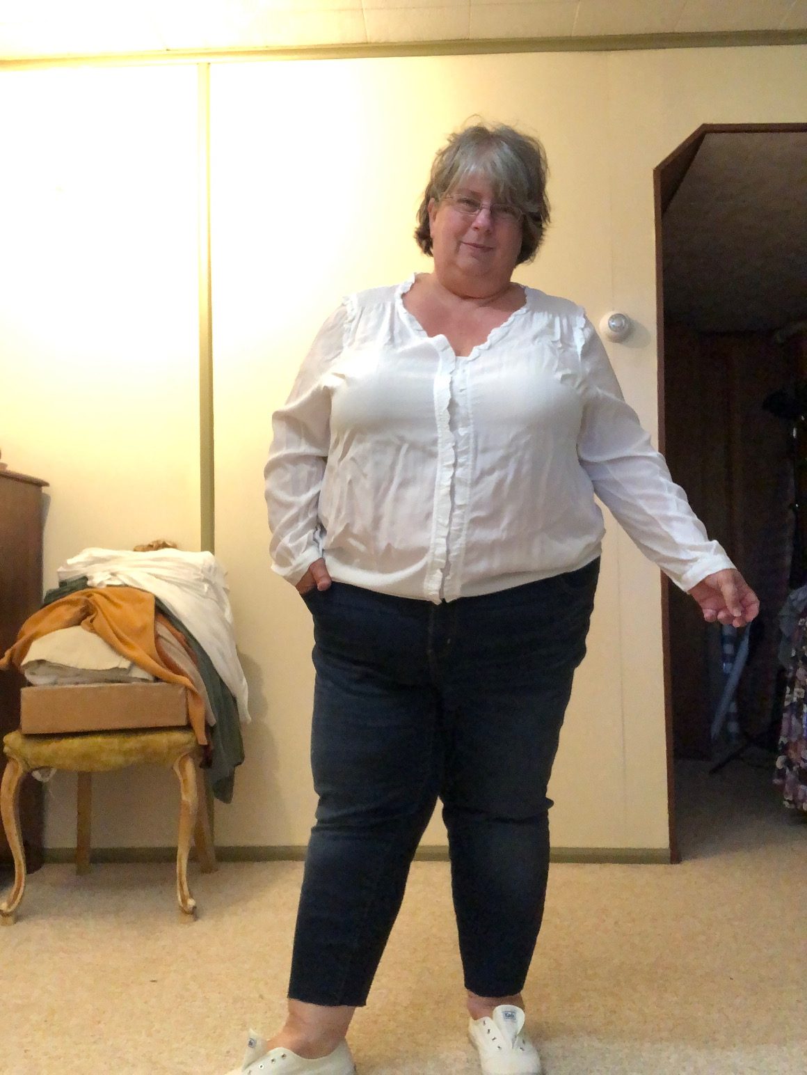 - Disappointed that this Gwynnie Bee top was so short. I liked the little ruffle placket down the front. And before you go “it’s not too short…”