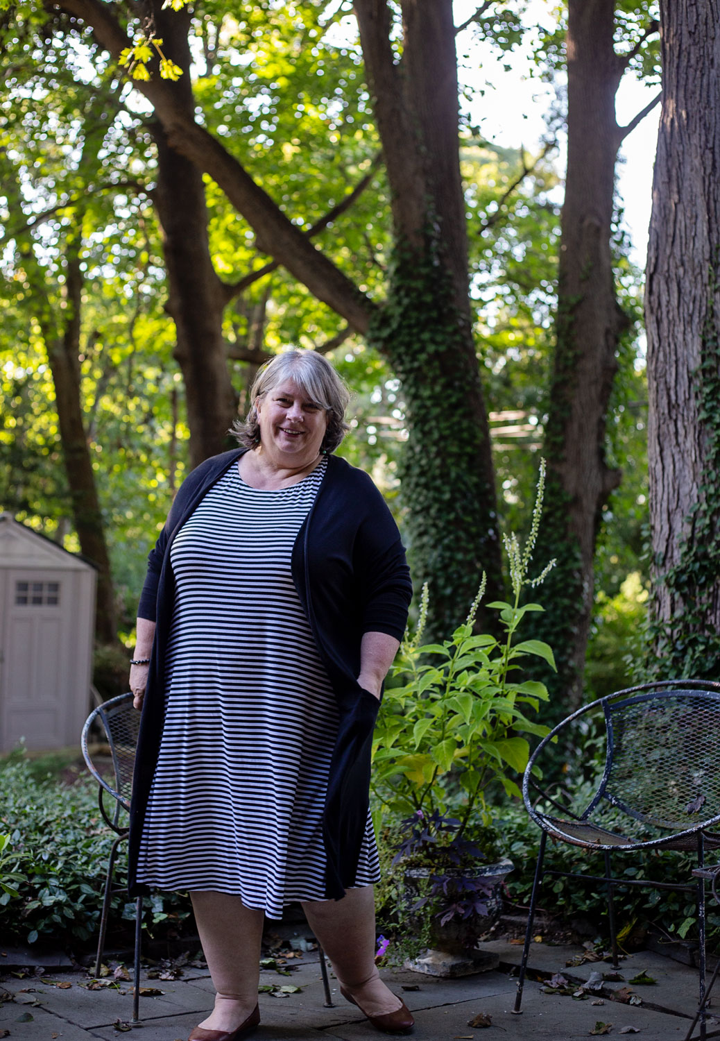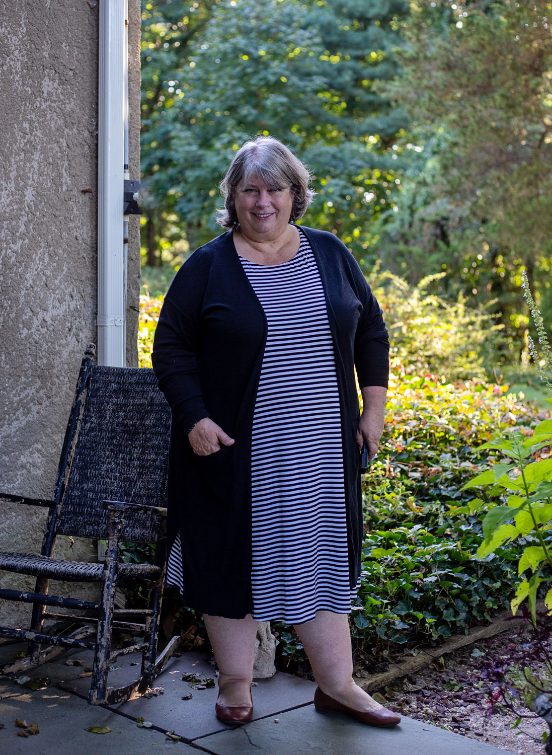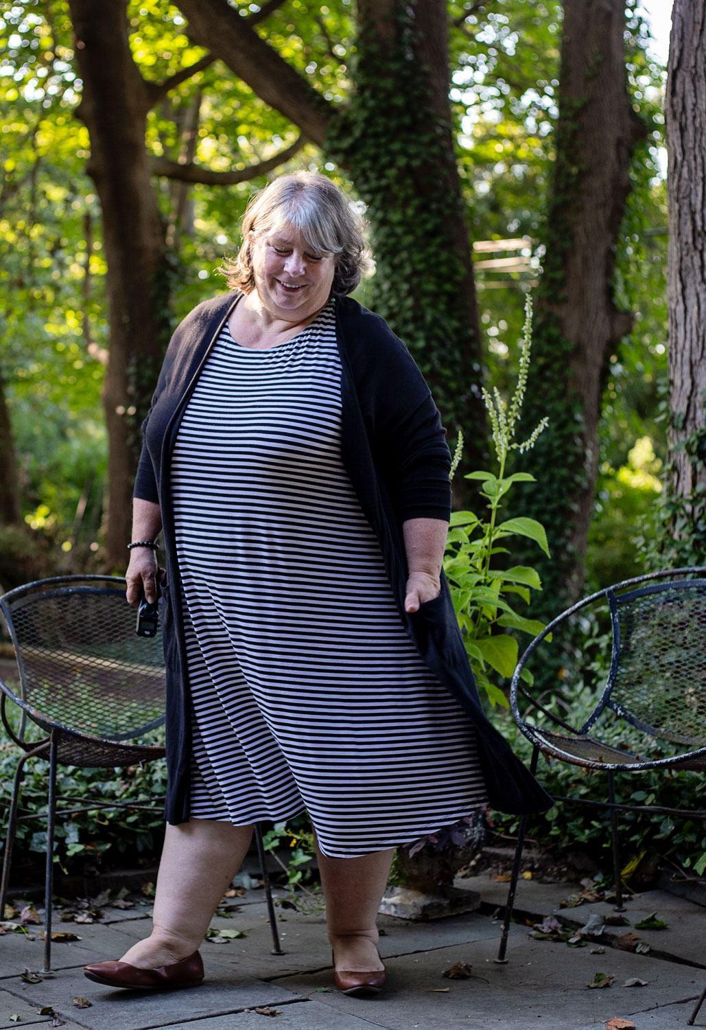 It’s nice to have some no-brainer outfits in your closet. They’re not exciting, but they’re tested, tried and true. Like this black and white striped dress (you saw this dress before here) and black longline cardigan. The dress is super stretchy so I was able to go straight to the sofa after taking pictures and get comfy with a book while there was still daylight to read by. No nasty waistbands or gaping busts or tightness anywhere.
