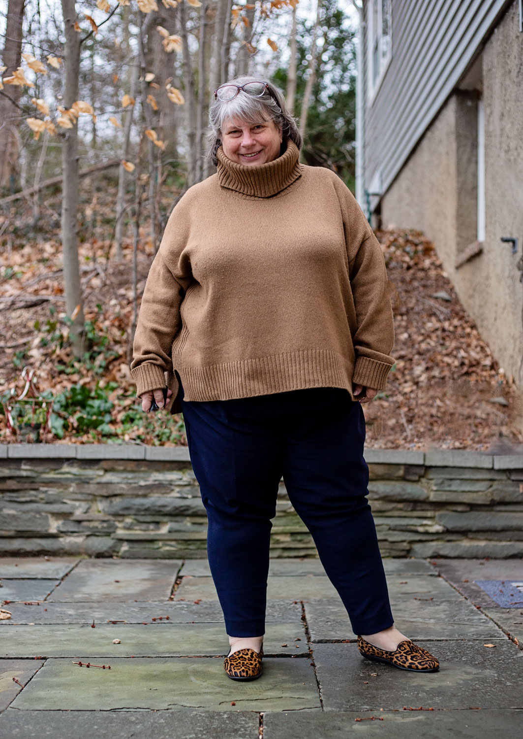 Anyway. The camel turtleneck was sort of overkill for the day’s temp, but. I didn’t want to wear the chestnut Ava&Viv top with them again cuz I’ve done that combo so many times. Anyway, it’s Friday. Next week looks like highs in the low 50s all next week so maybe this will be a little less challenging. Fingers crossed.