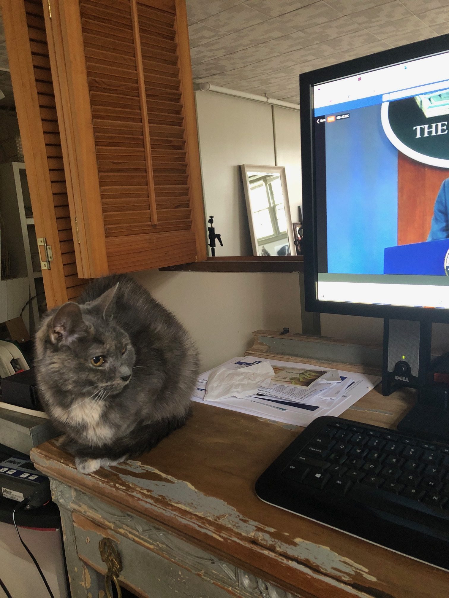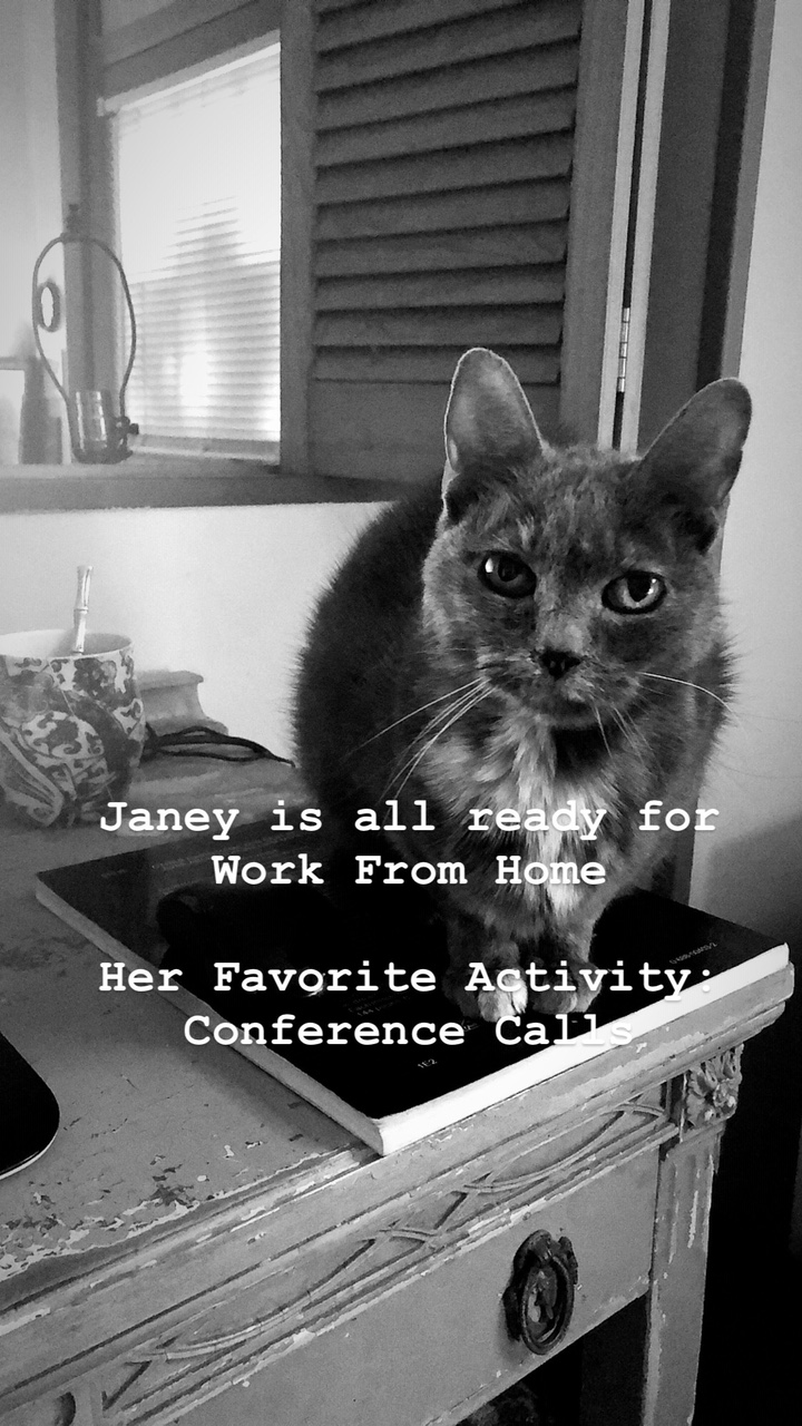 She’s so funny… She’s sitting just off camera next to me on the desk but she’ll keep reaching her paw in to the view to like pat my arm to say pet me pet me and The other people on the conference call can see the paw keep reaching in.