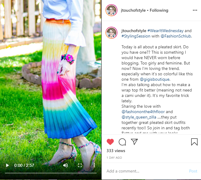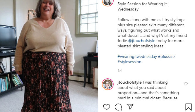 Jodie and I “co-styled” pleated skirts on IGTV (Instagram TV). First time I’ve done IGTV so that was exciting…and why I was up til midnight last night getting everything figured out and done.