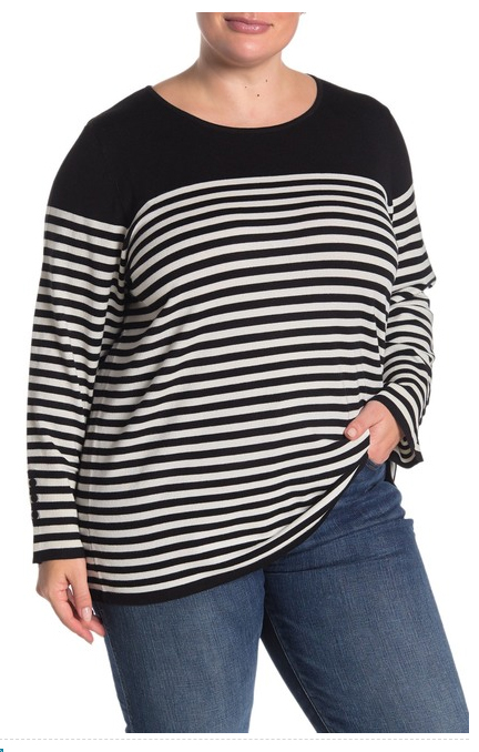 GRACE ELEMENTS Striped Long Sleeve Pullover, Size 3x