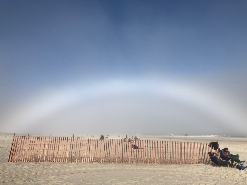 Work. Then sweet, sweet release and a trip to the beach with friends. It was a little foggy but nice for sitting til we were too damp and cool. We saw an albino rainbow. The parking lot had orange cones in every other parking spot to not let it fill up more than 50% capacity. It was a foggy, Tuesday afternoon. It was nowhere near even half capacity.