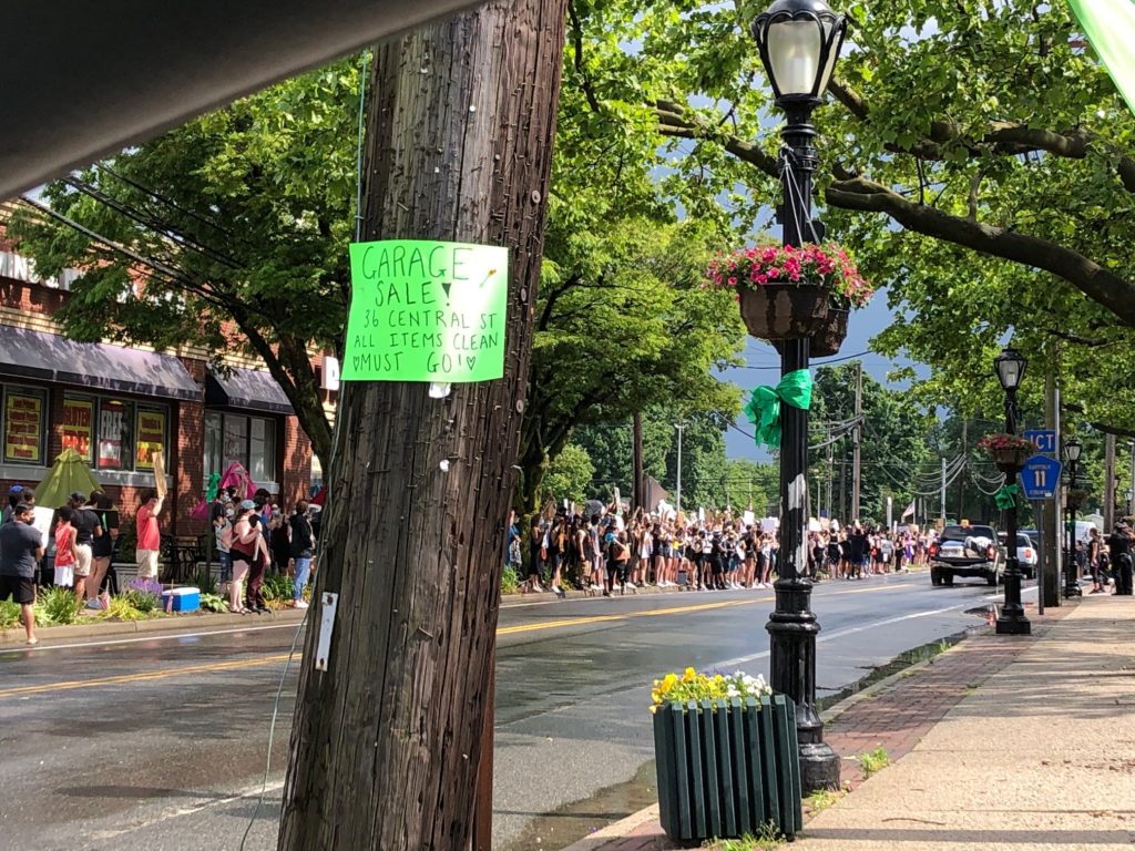 Not from an “oh I’m afraid of getting hurt/arrested” perspective, more just my usual anxiety about going to something new by myself. Are there rules? Were we going to be marching or just holding signs up on the side of the road? Did people stay the full three hours or did you rotate in as needed? Was there like a registrar to sign in with and get a name tag? I only knew the time (3-6) and location. So I headed that way thinking I would just go, get the lay of the land, and see how I felt once I got there. A few minutes away the skies opened up and there was a torrential downpour.