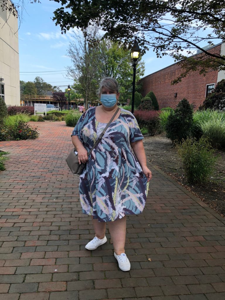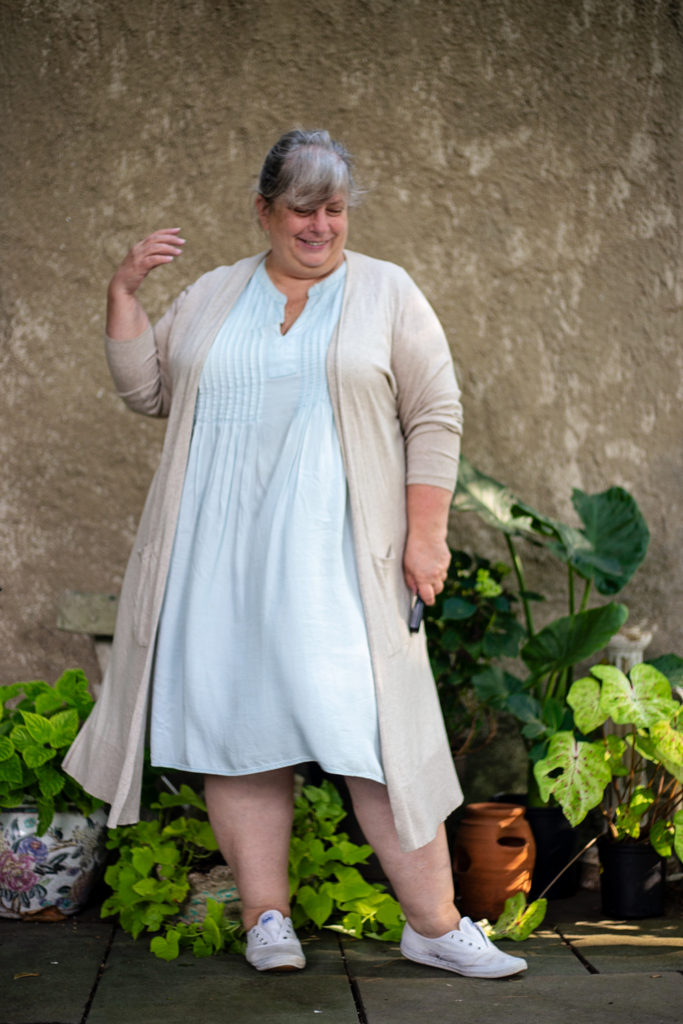 Dress: Junarose, old, 3x. It’s just a lightweight, drapey, woven rayon dress. And/or nightgown.