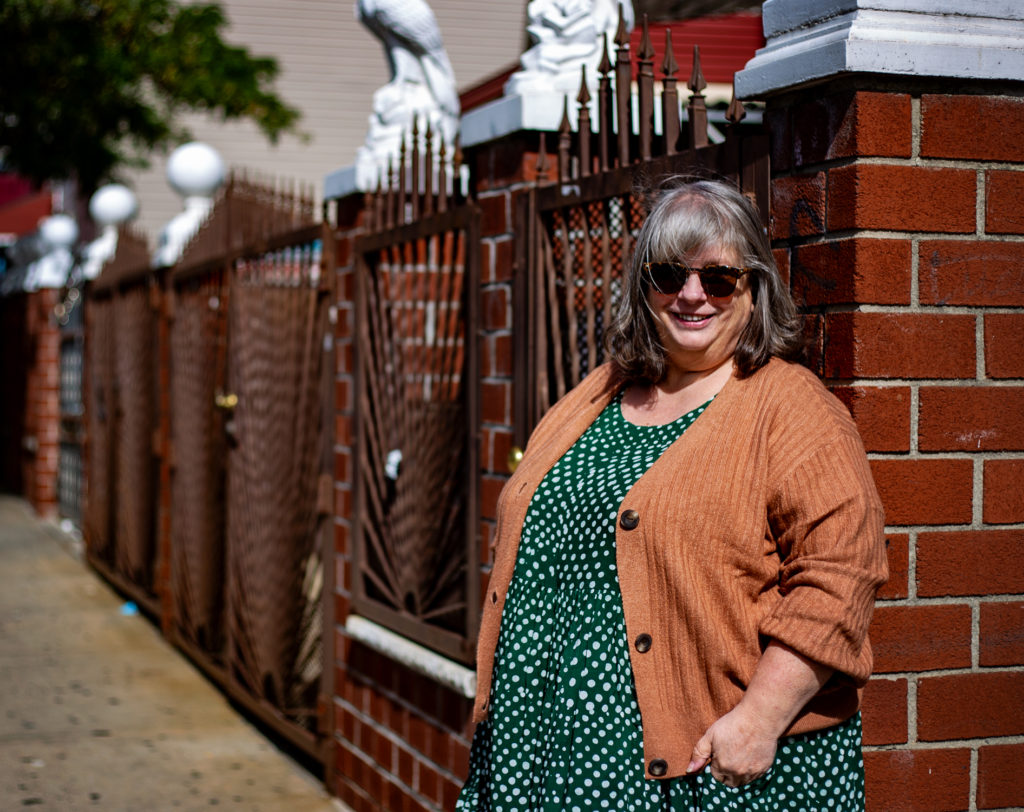 I love that dress on you – and it looks great with that cardigan. I wouldn’t think of having it altered – it looks great just the way it is.