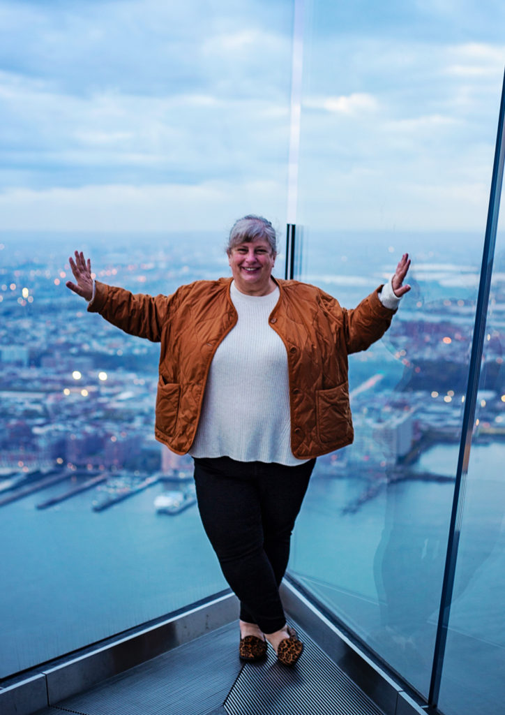 Needed an outfit that could from office day to city night. Was a mild evening but I knew we’d be on a rooftop after dark and that would be cooler and windier. This jacket is super thin and lightweight but is filled with Primaloft which is a warm, vegan fill. It’s great because it doesn’t make coats get too big and puffy. I’m big and puffy enough all on my own. And the comfy walking shoes cuz city.