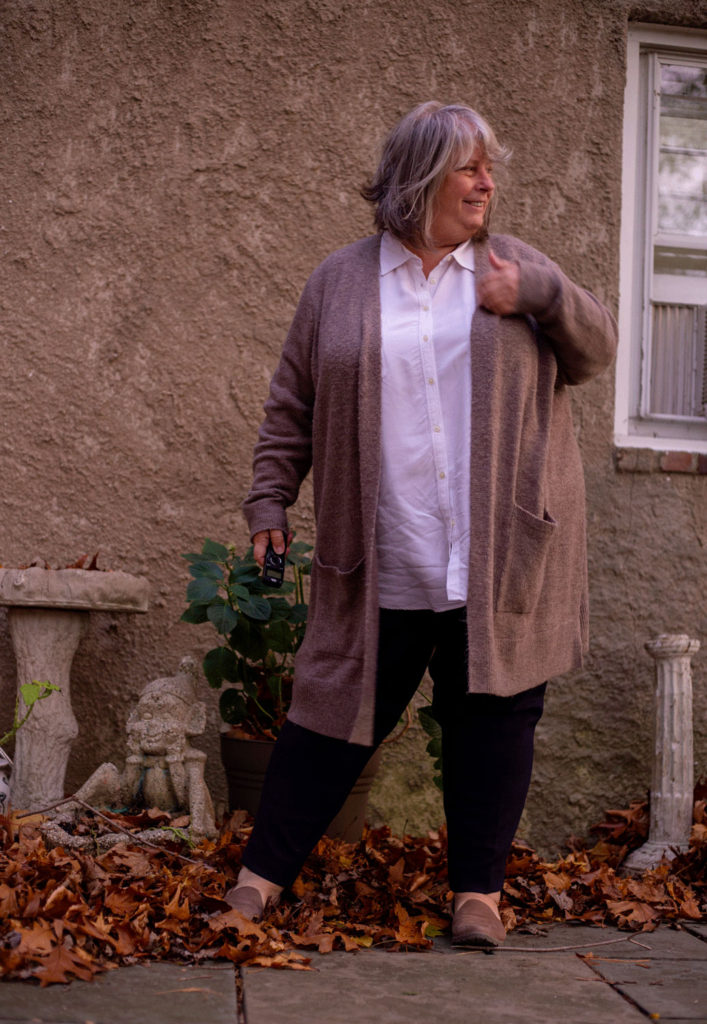 Cardigan: Old Navy, no longer available in this color but comes in brown and a pretty green. I’m wearing a 2x and wish I had a smaller size now.