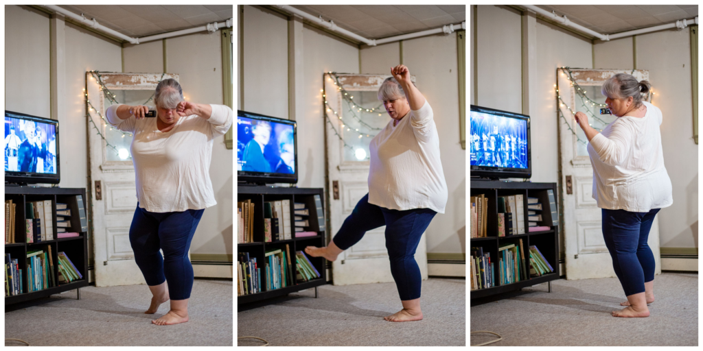 Barefeet: It’s a challenge doing any sort of movement on carpeting; having bare-feet vs sneakers helps a little bit. Still, I dream of slippery floors.