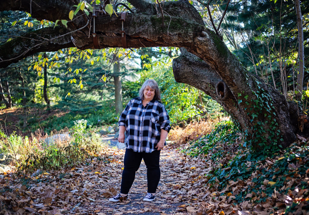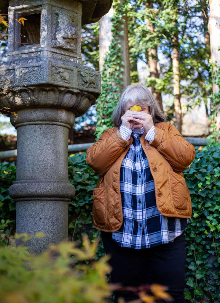 I knew I wanted to do some outfit photos…but I wanted to keep things simple and comfortable. I did some light layers as the day started cool. Actually, Mother Nature played a little joke at my expense. It was SUPPOSED to be quite cool, so I dressed accordingly. But after a short time walking in the garden, I was Way Too Hot. As soon as temps go over 55 and I’m moving, I’m too hot.