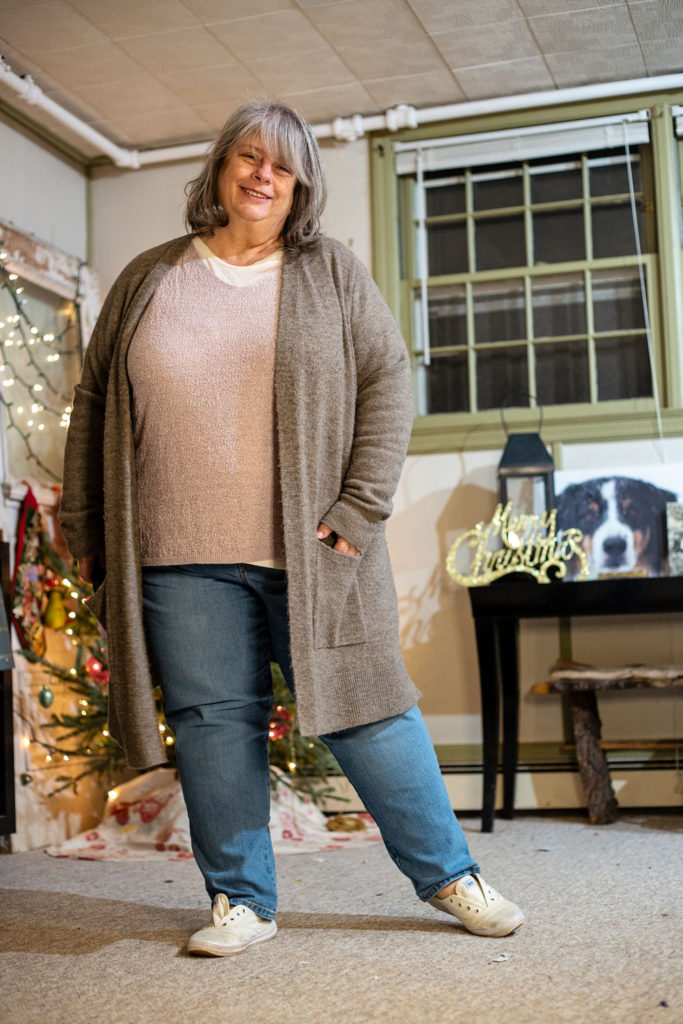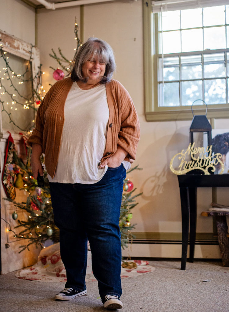 Sloppy day. Ha ha. After shooting three outfits yesterday I wasn’t having it with making any real effort today, plus, I wasn’t leaving the property anyway, so…who cares. I just tried wearing a cardigan that hasn’t gotten much use. I like it more over dresses than jeans, so…it was useful in the fall, not so much in the winter.