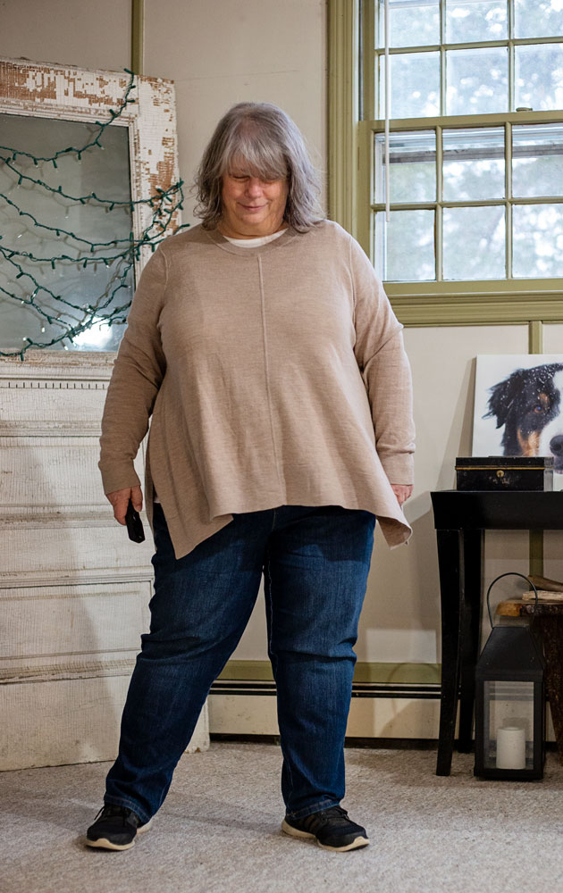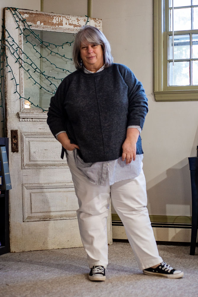 Work from home day, but had to get dressed cuz multiple zooms. This outfit, along with the black jeans/black turtleneck combo, is one I would wear every day if I could wear the same thing every day. It’s that comfortable and easy and I like the way it looks.