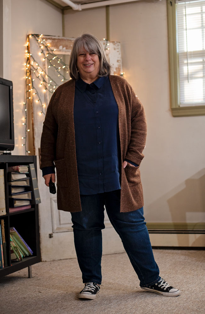 bettye in front of antieuq door with twinkle lights