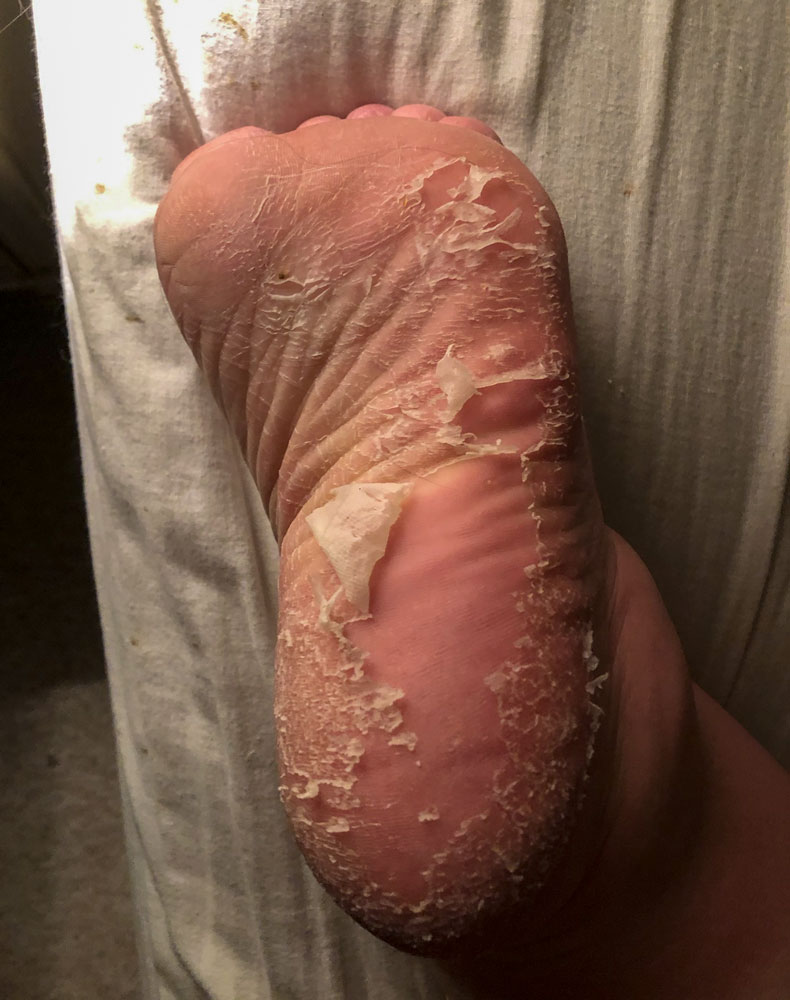 Scroll down for pictures…and might I say, it is VERY DIFFICULT to take pictures of the bottoms of your feet by yourself.