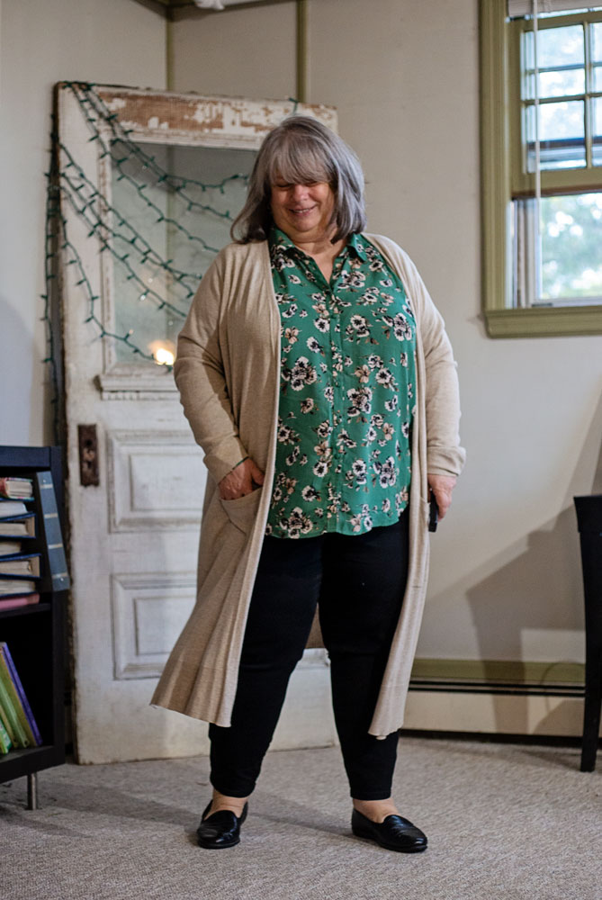 Love the first two outfits – the dress looks great on you. And, the green flowered blouse is definitely a good one.
