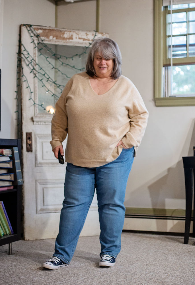 I’m gonna have to do a whole treatise on Converse. I get this comment a lot. The thing is, I’m wearing Converse SHORELINES. They’re different than the Classic Chucks, that DO feel like walking on a concrete slab. The shorelines are lighter, more flexible, and with a little arch support. They also come up lower on the vamp, if that’s a thing for you (it is for me).