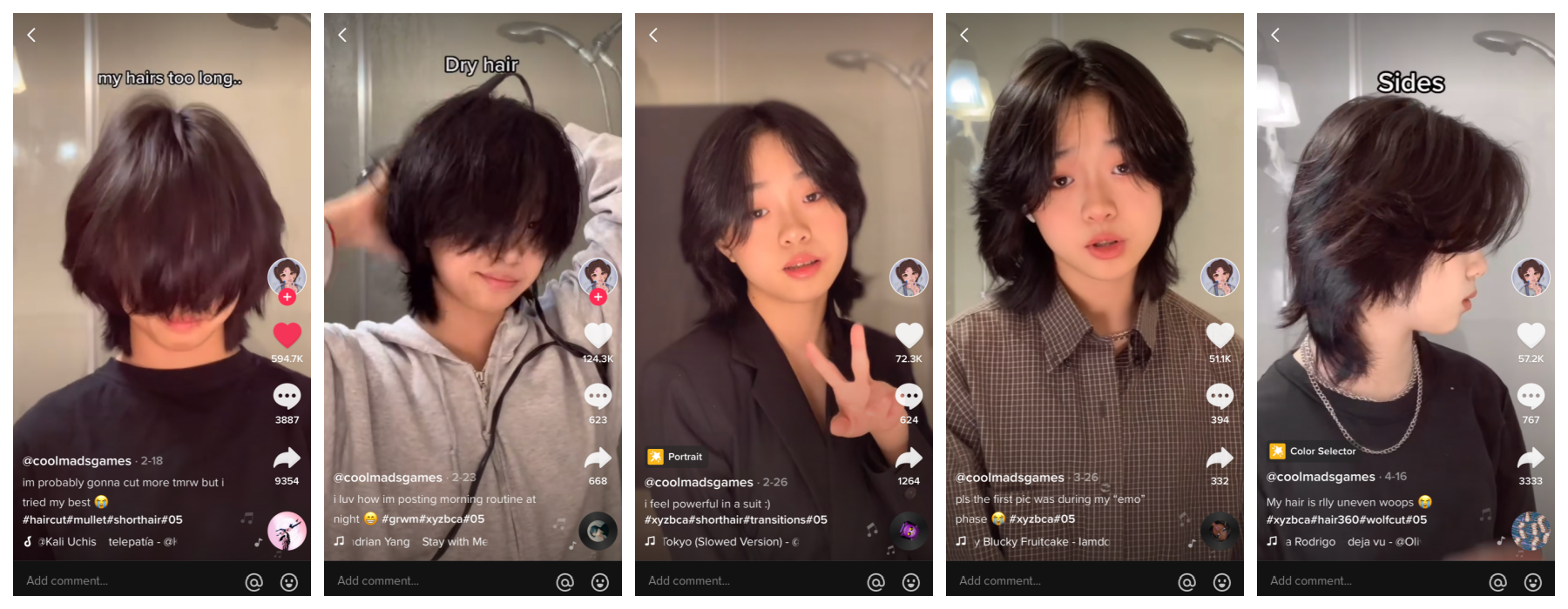 I frequently trim my bangs but it’s hard for me to get the cut angle right so they lay nicely without flipping up. And when my hair was long I would cut the length all the time, that was simple. Even when it was long and layered. But I think the shorter your hair/the more layers, the more “technically precise” you need to be. But…this girl was not being precise At All. I’ll share her hair-cutting post with you on TikTok so you can see. She’s not careful AT. ALL. But she also has lovely, smooth, heavy hair.