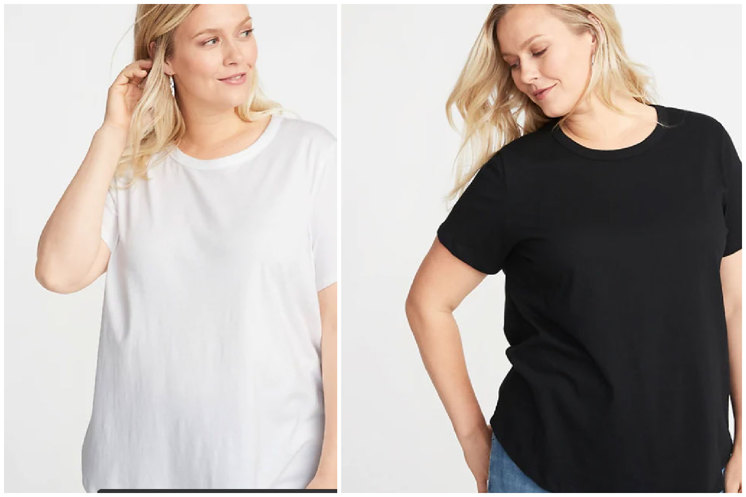 Two Old Navy just regular old tees, one white, one black. They’re 100% cotton, which is NOT my favorite (I prefer something lighter and stretchier mixed in – rayon, spandex), but…they’re fine. They’re mostly for wearing under other things so a perfect fit is not AS crucial.
