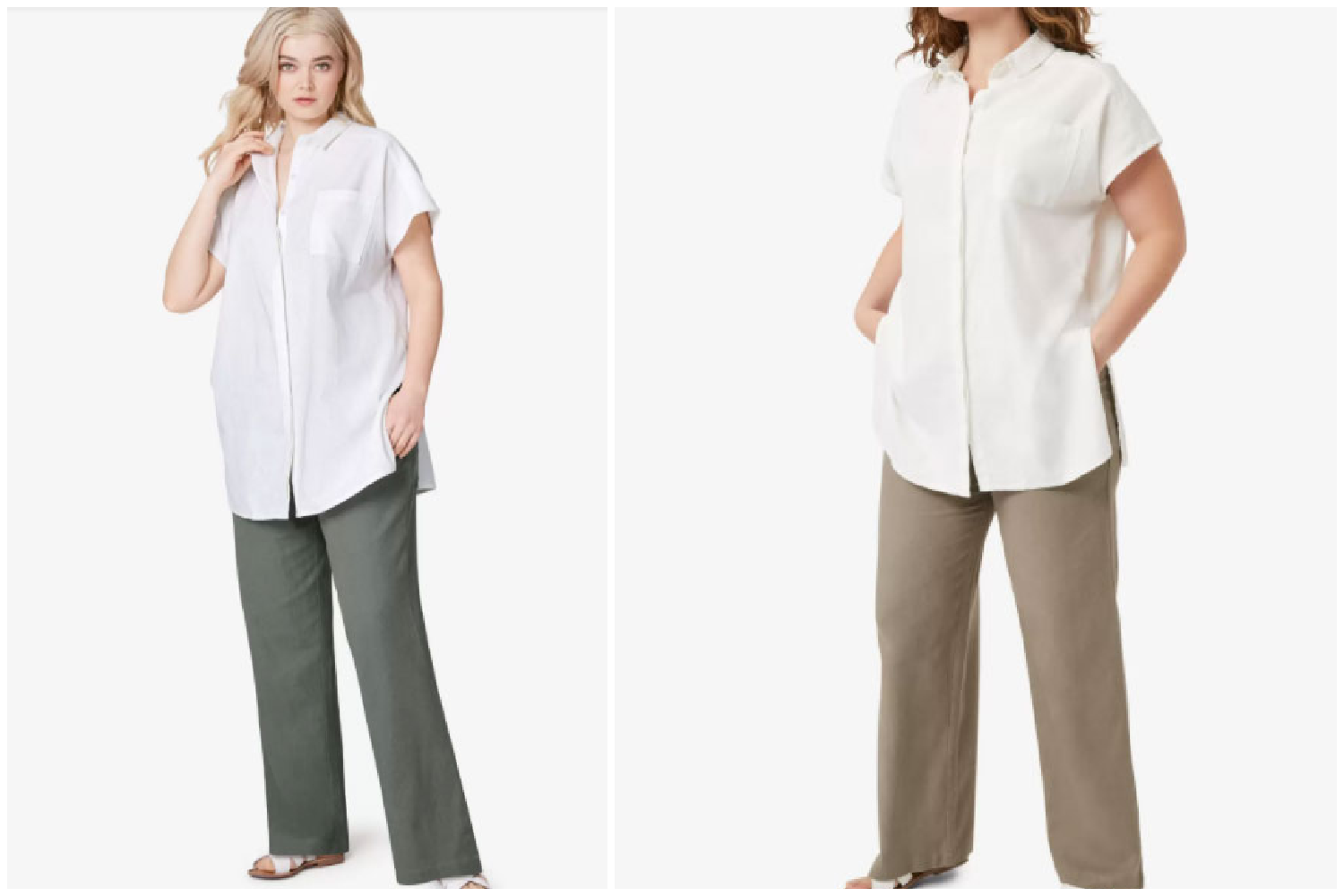 These two linen wide-legged pants, one in “olive grey,” one in “bark.” They’re not The BEST fit, but I’m desperate for summer pants so I start lowering my bar. They’re SUPER long and MUST be hemmed…but before I take them somewhere for that, I just ordered two pairs of cropped length (which will be NORMAL LENGTH on me) linen pants from Old Navy. Fingers crossed they come in before I leave for Florida AND that thy fit (better than the Jessica London ones).