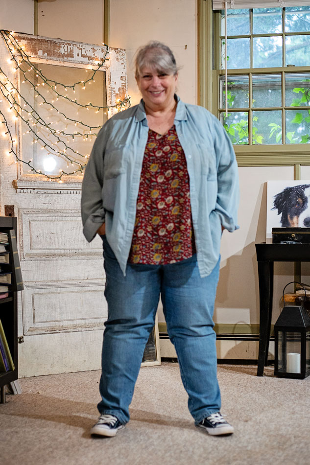 But, plus, that faded chambray color seems to go with EVERYTHING. At least in my wardrobe. Maybe it’s cuz I have mostly warm-toned colors and that gentle blue is a good contrast (blue opposite yellow on color wheel, and those autumnal warm-toned colors are yellow-based).