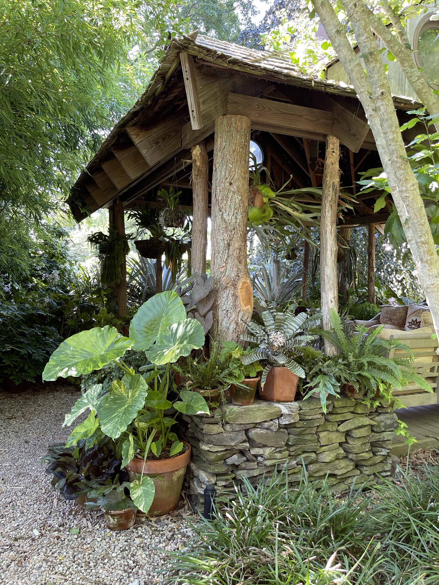 Oh, what a lovely day! Mid-70s, no humidity. A friend and I headed out east early to a new garden in Mattituck called Landcraft Garden. WHAT A DELIGHT. Four acres that have been owned and designed and tended by two designers (one interior, the other landscape). They have a wholesale tropical annuals business and initially created the garden as a showcase for their plant material. And then it grew and grew and now it is just room after room of peaceful spaces, beautifully combined plantings, idyllic seating areas (we may or may not have monopolized a bench swing in the shade for an hour while getting looks from passersby who wanted their own turn).