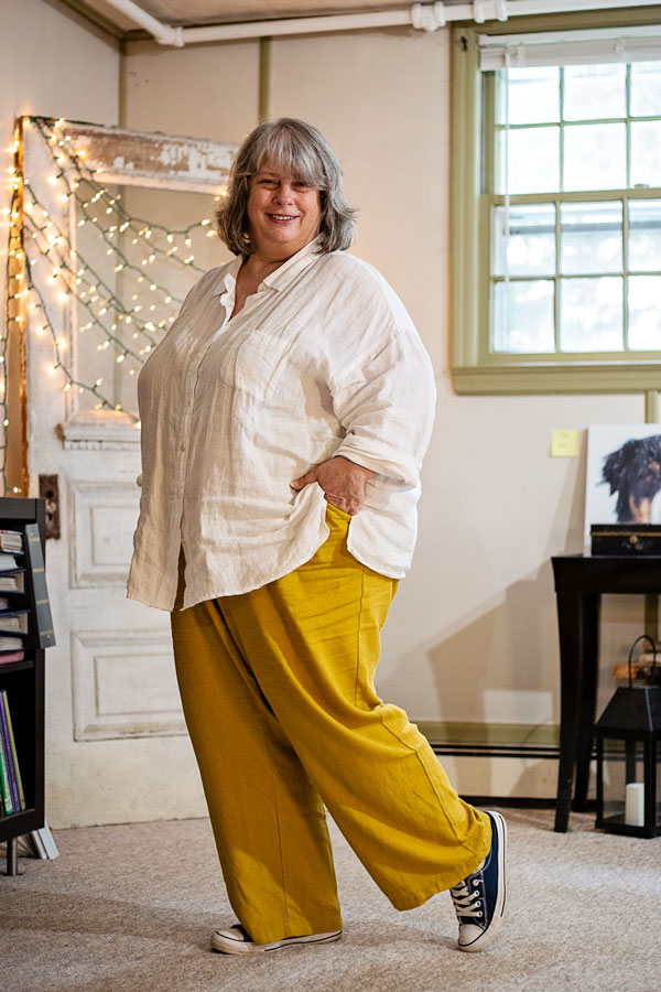 I tried like 3 other “top” combinations with these pants. And while there are many things in my closet that *go* with this wonderful color, I was comparing each option with the white linen blouse combo and…slouchy white linen + slouchy mustard linen won every time. Once I have a BEST COMBINATION, I’m unmotivated to wear anything else…why would I wear SECOND best…or third or fourth…when I can wear THE BEST? Ha.