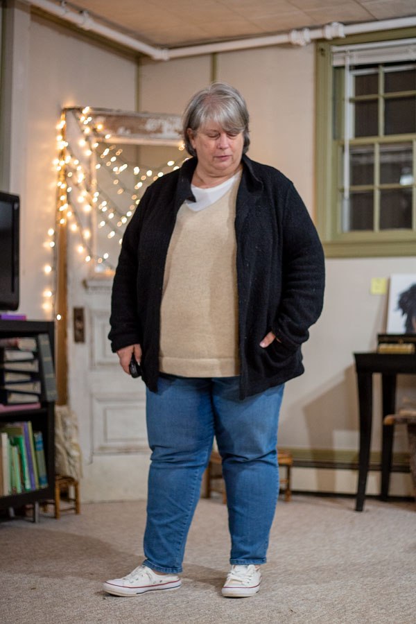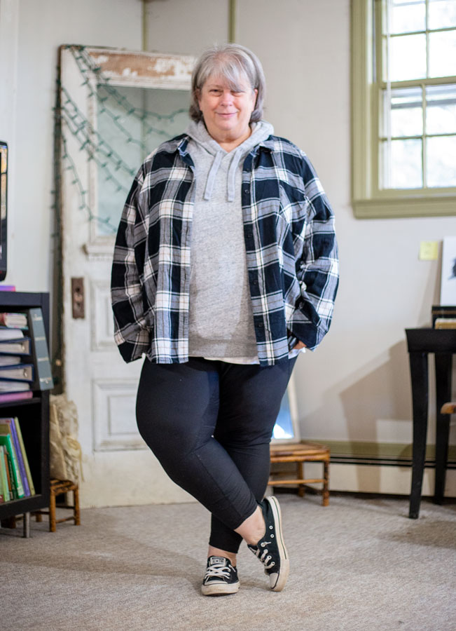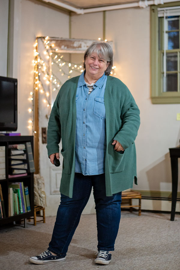 Gotta stay in today and clean and do trip-prep. Just running out for breakfast so….clothes. This is cozy on top…a little cool on the bottom, I’m craving thick warm cozy fleece sweatpants…like old school with the gathered elastic ankle.