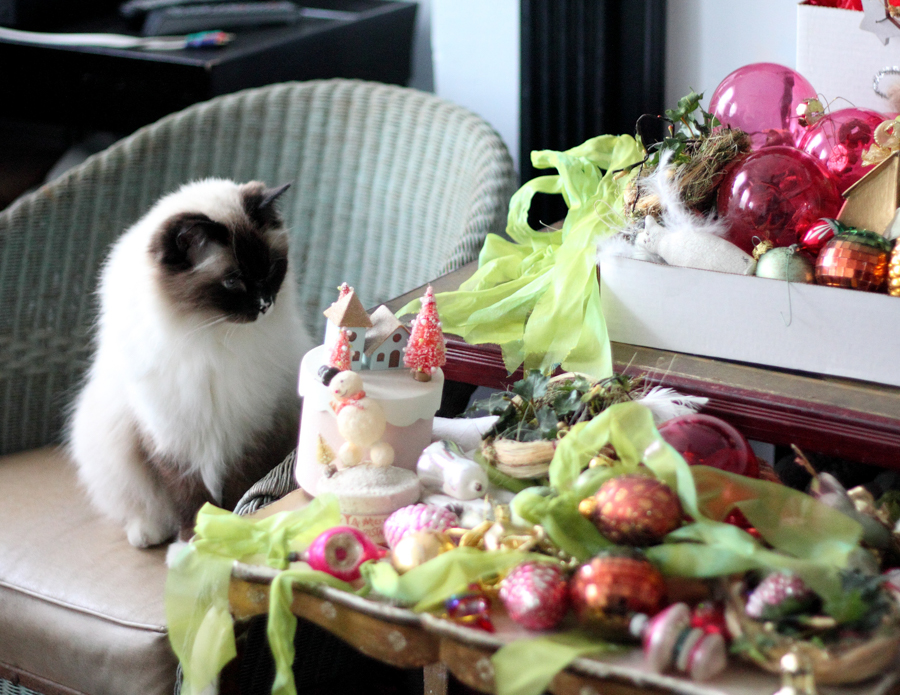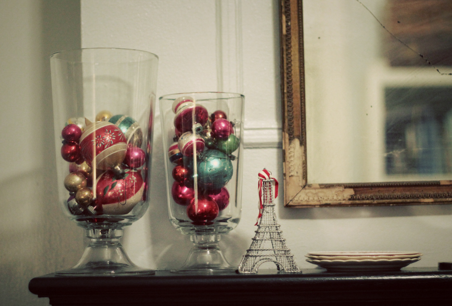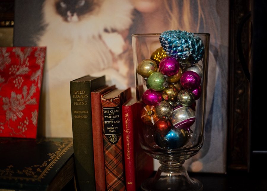 I have a lot of vintage ornaments that were my parents’. Enough to adorn the tree AND other areas.
