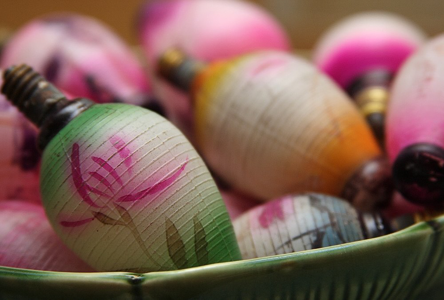 These tree lights were from 1950s Japan. They used to screw into the light strand…but that kind of strand is no more so now I just put them in a pretty vintage dish and set them out at Christmas. They’re one of my favorite Christmas decorations (guess how many more times you’re going to hear THAT today??)