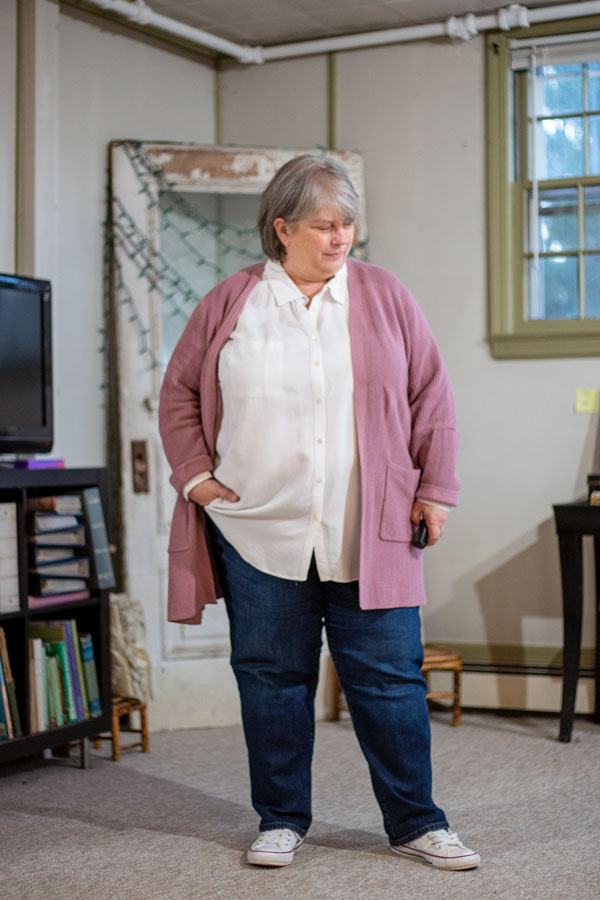 l love the mauve cardigan – one of my favorite colors. And, I sure hear you with the energy thing. Not much of that to go around at my house these days.