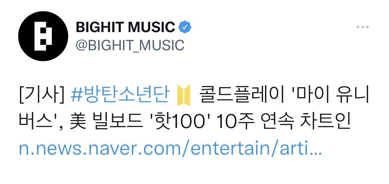 “Article #Bangtan Sonyeondan (that’s BTS) Coldplay ‘My Universe’ Billboard Hot 100 10 consecutive weeks.” Granted, it was mostly Konglish (English words spelled phonetically in Korean), but still 🙂