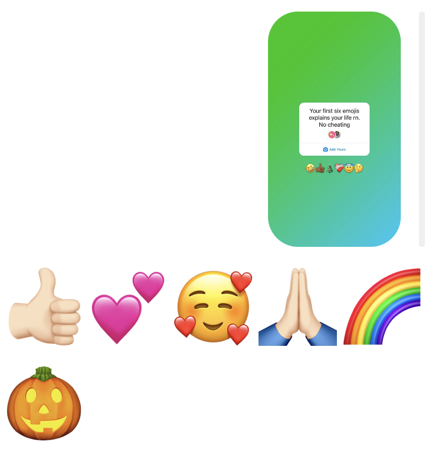 Someone posted on Instagram: “share your 6 most recently-used emojis.” Mine were: