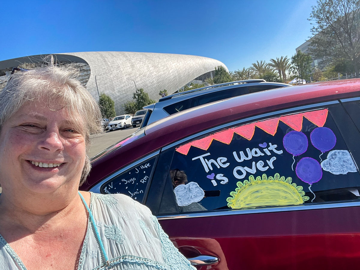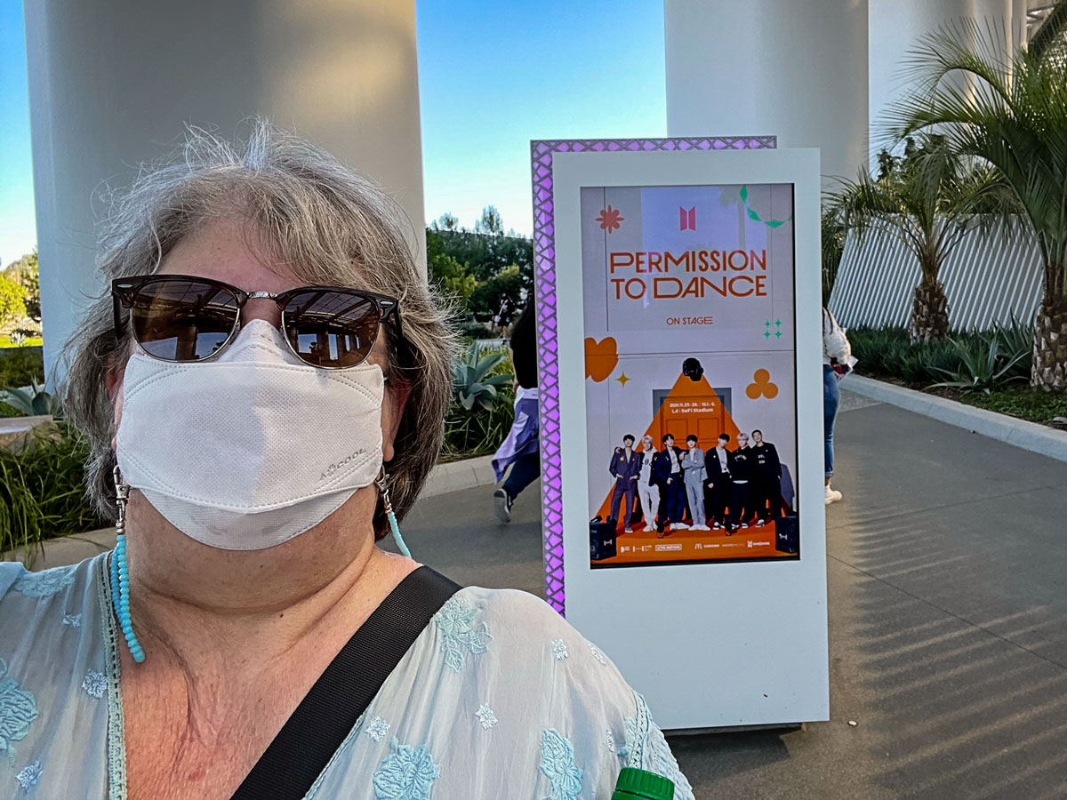 Well, by being in that particular spot, we became the gatekeepers to ALLLLLLL the people who approached the barricade area, thinking that’s where the line was. And we had to keep saying, well, yes, this is the LINE, but the back of it is over THERE, that’s where you need to go….and “over there” got further and further away as the afternoon wore on. So people got more and more disgruntled and around 4:30 (the doors were to open at 5:30) a HUGE rush of people started pouring in trying to get right where we were. Line Guy couldn’t manage it on his own, the new people were starting to ignore US…it was getting a little overwhelming. Finally, a couple of LOUD and brave Armies (BTS Army, not US Army, haha, things hadn’t gotten THAT out of hand. Yet.) who had been watching us try to direct people for the past couple hours, came over and really took charge, shouting and getting in people’s faces and MAKING THEM MOVE BACK, ha. I wish I’d gotten their names to thank them.